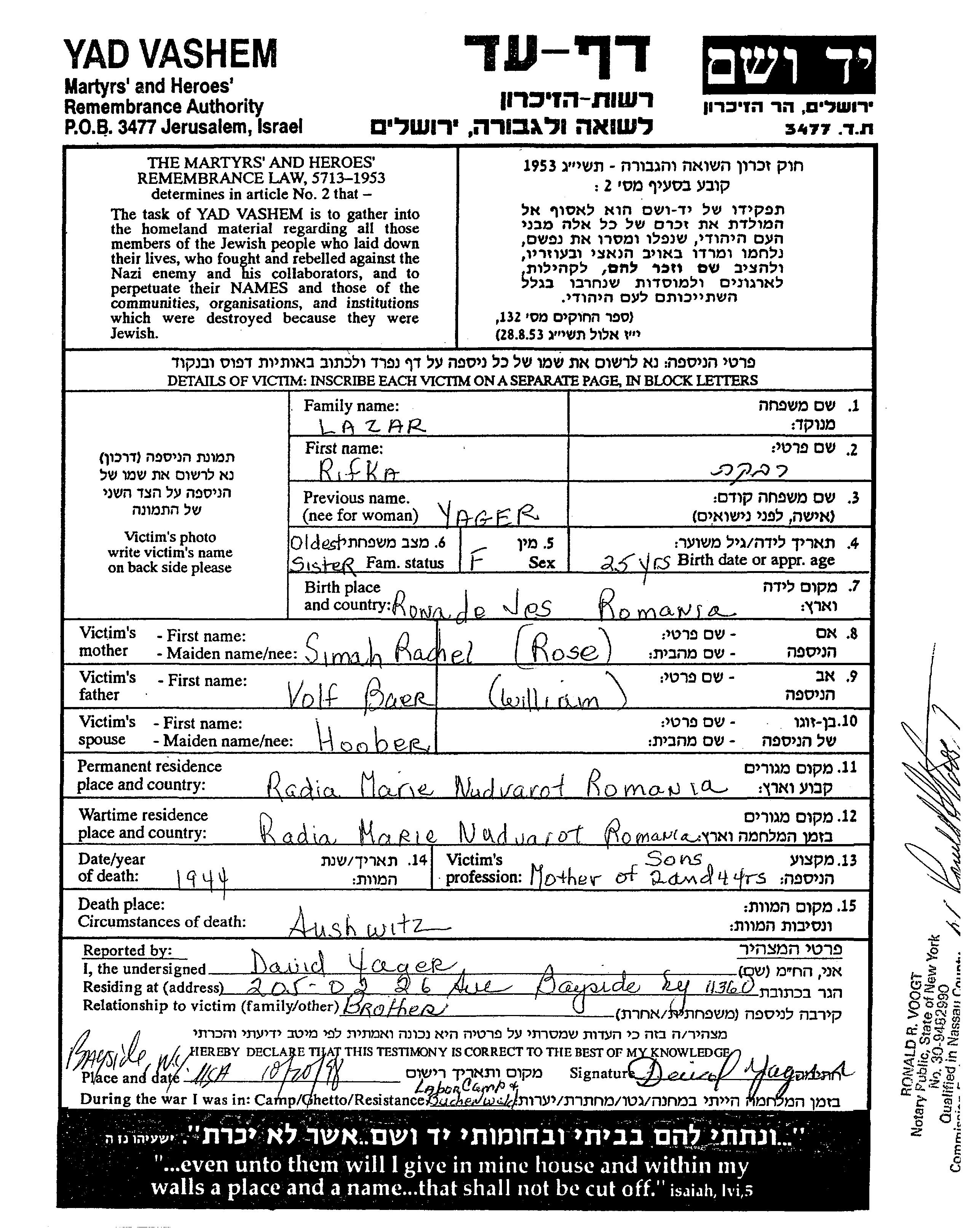 לזר ריפקה Oradea Mare, רומניה דף-עד
