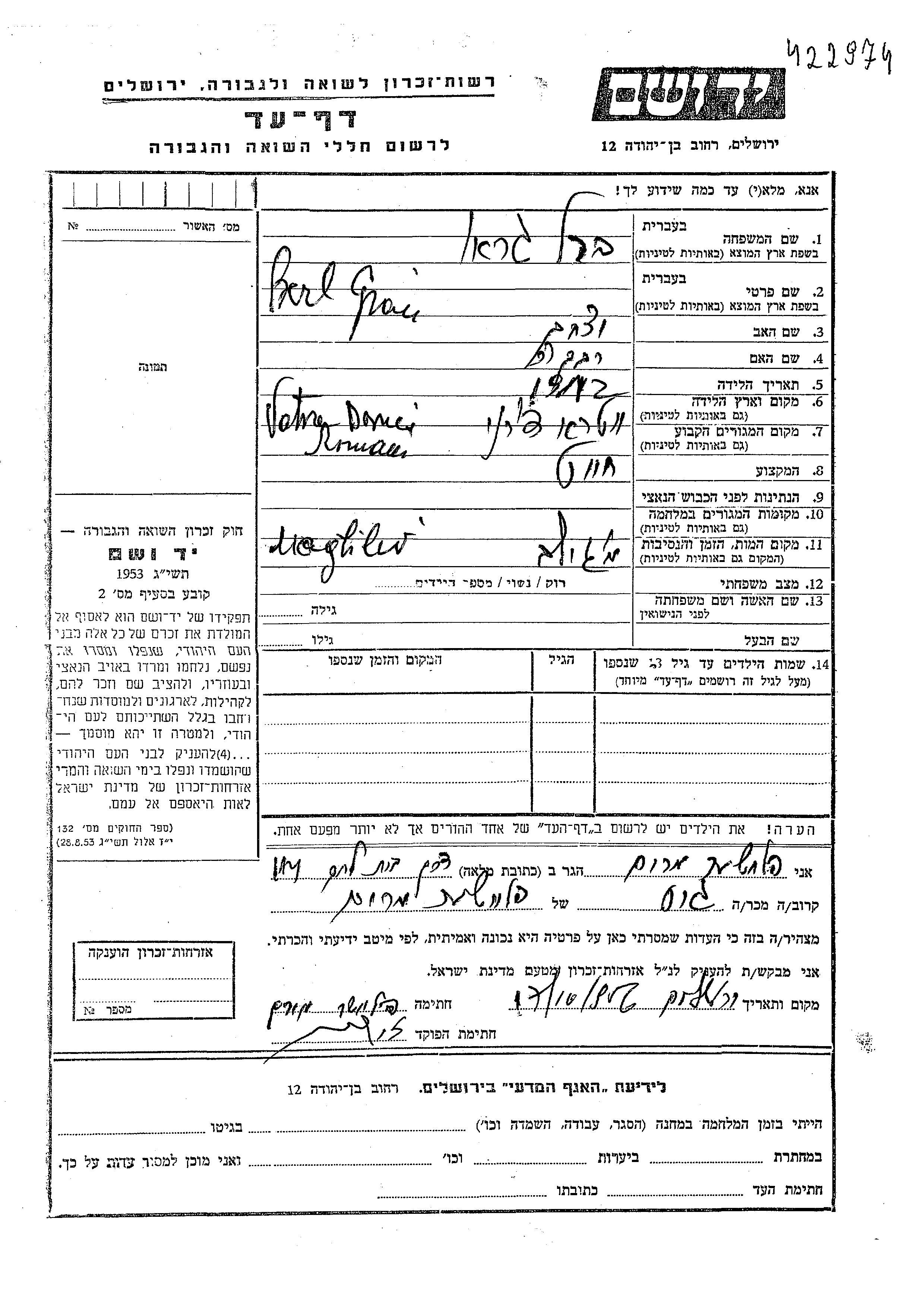 חיפוש שם מוסר דף העד. חיפוש לפי כל שם פרטי, כולל כינוי או שם חיבה