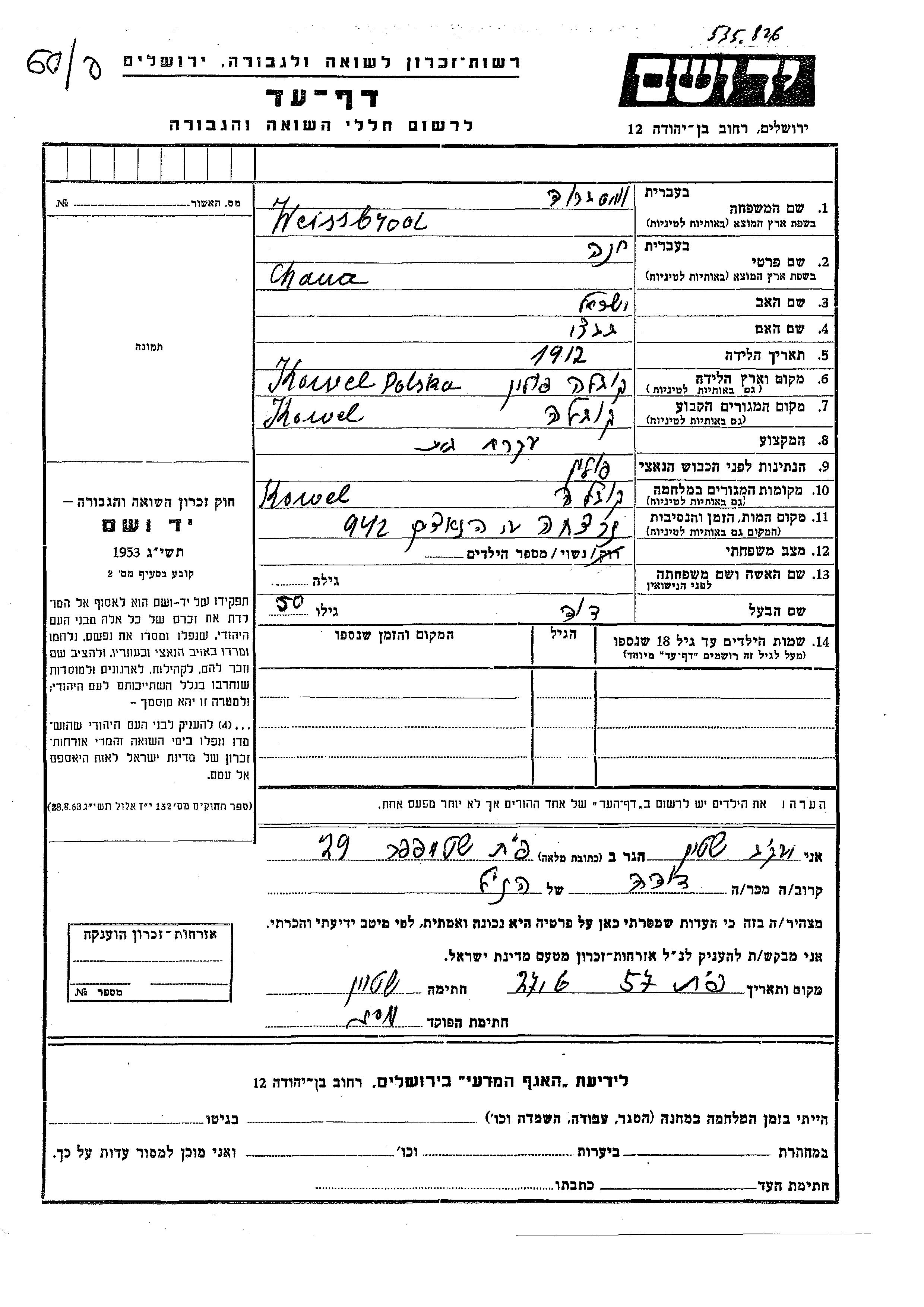 Weissbrod | חנה | 1912 | Kowel, פולין | דף-עד |