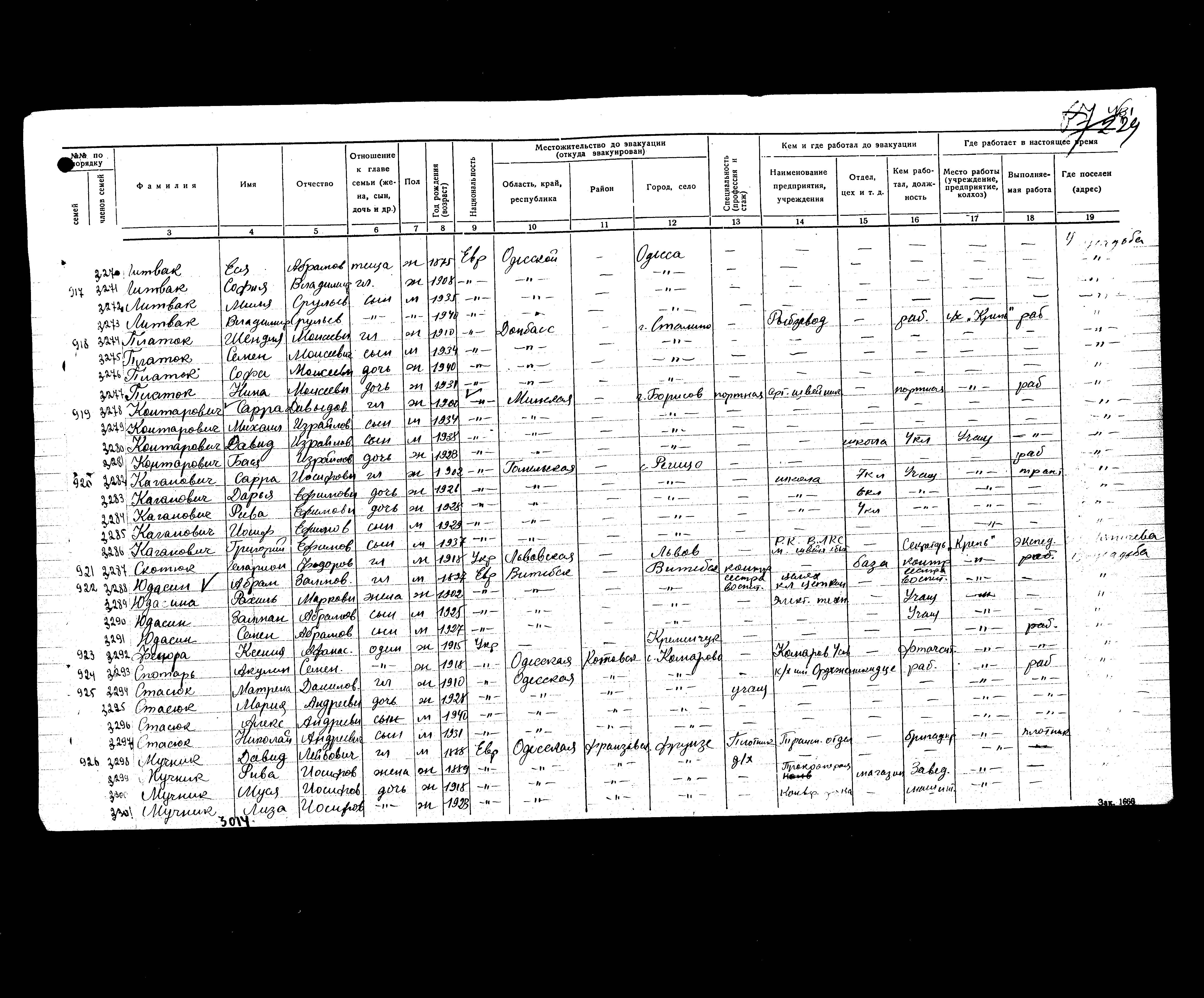 | יודסין | Abram | 1897 | ביאלורוסיה (ברה"מ) | רשימת מפונים |