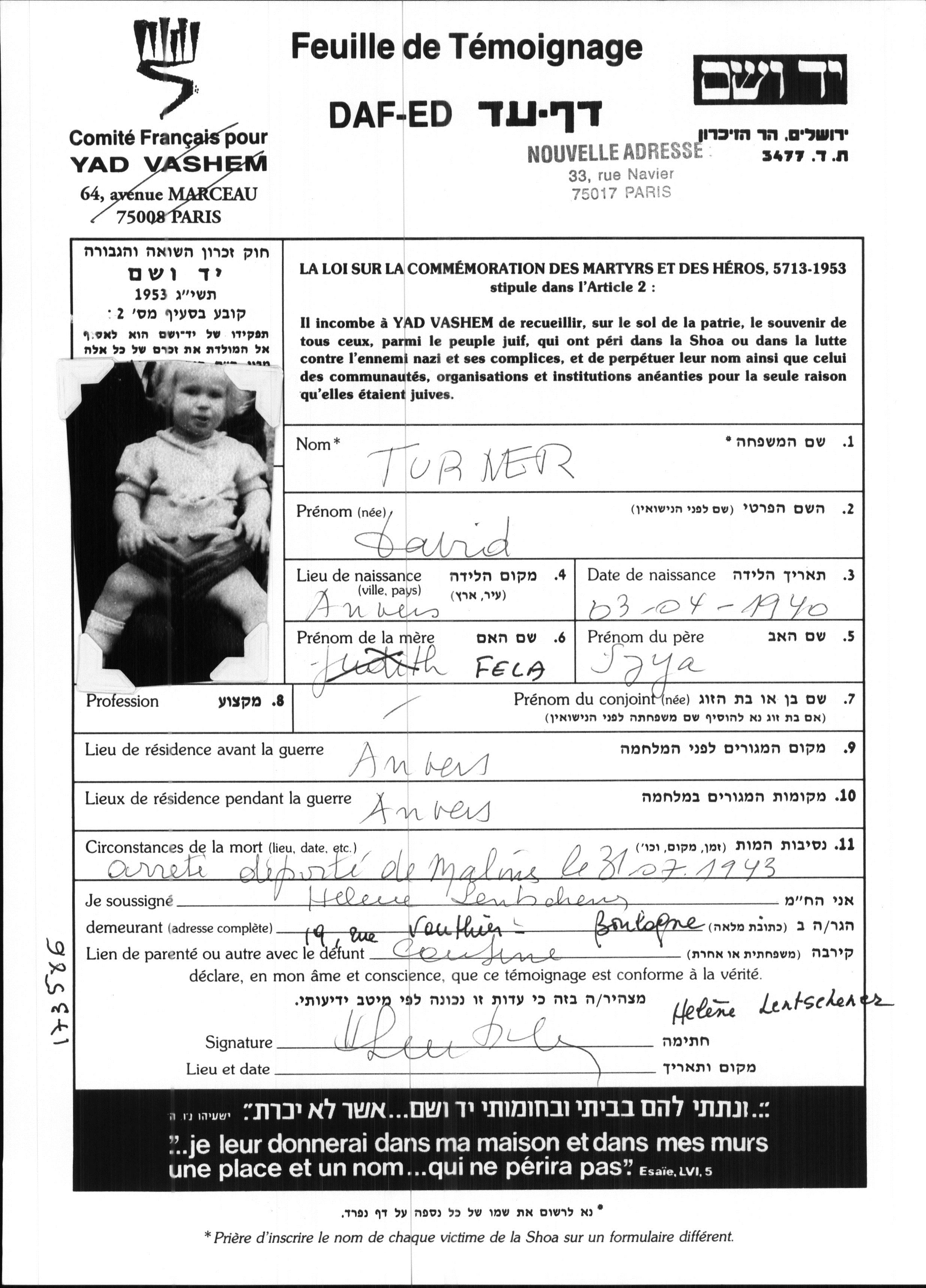 טורנר דוד 1940 Antwerpen, בלגיה רשימת גירוש