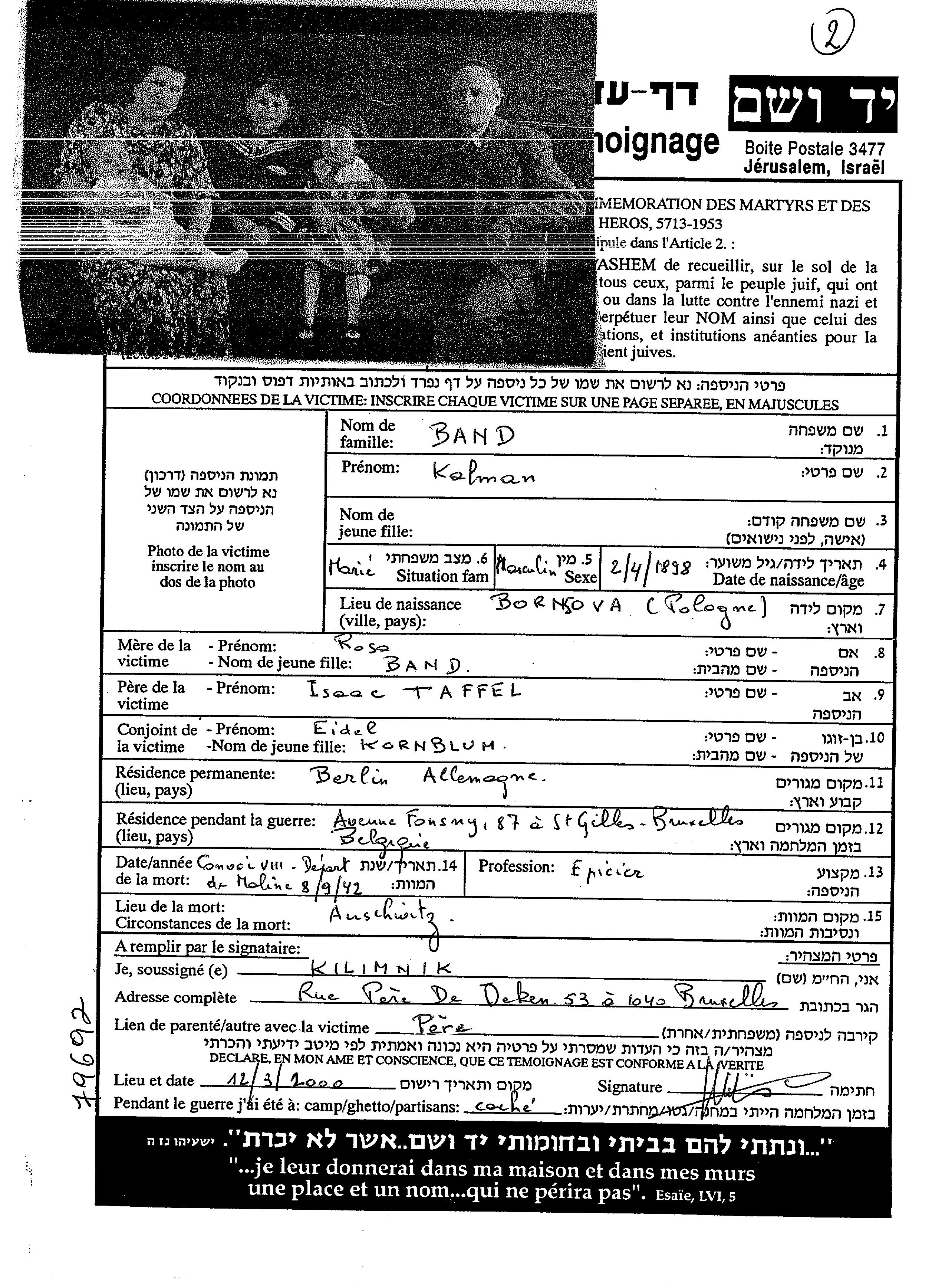 | בנד | קלמן | 1898 | Borusowa, פולין | רשימת גירוש |