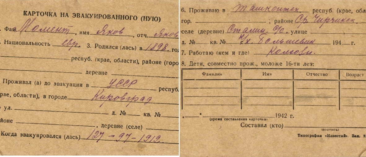 Moment Yakov 1898 Kirovograd, אוקראינה (ברה"מ) רשימת מפונים