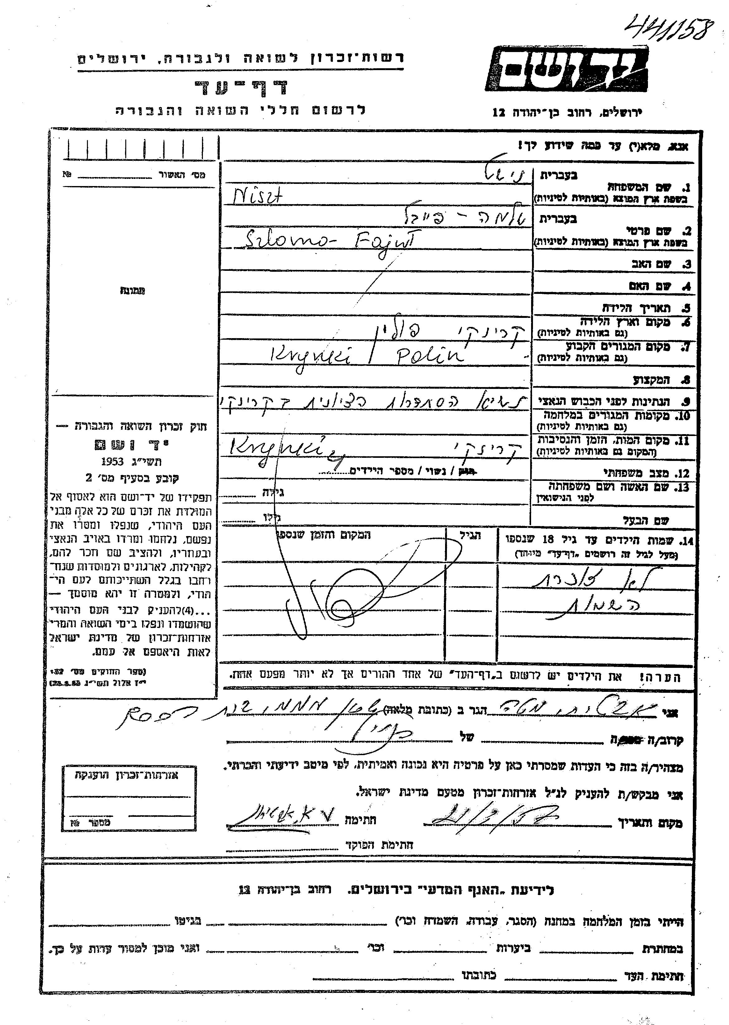 חיפוש שם מוסר דף העד. חיפוש לפי כל שם פרטי, כולל כינוי או שם חיבה