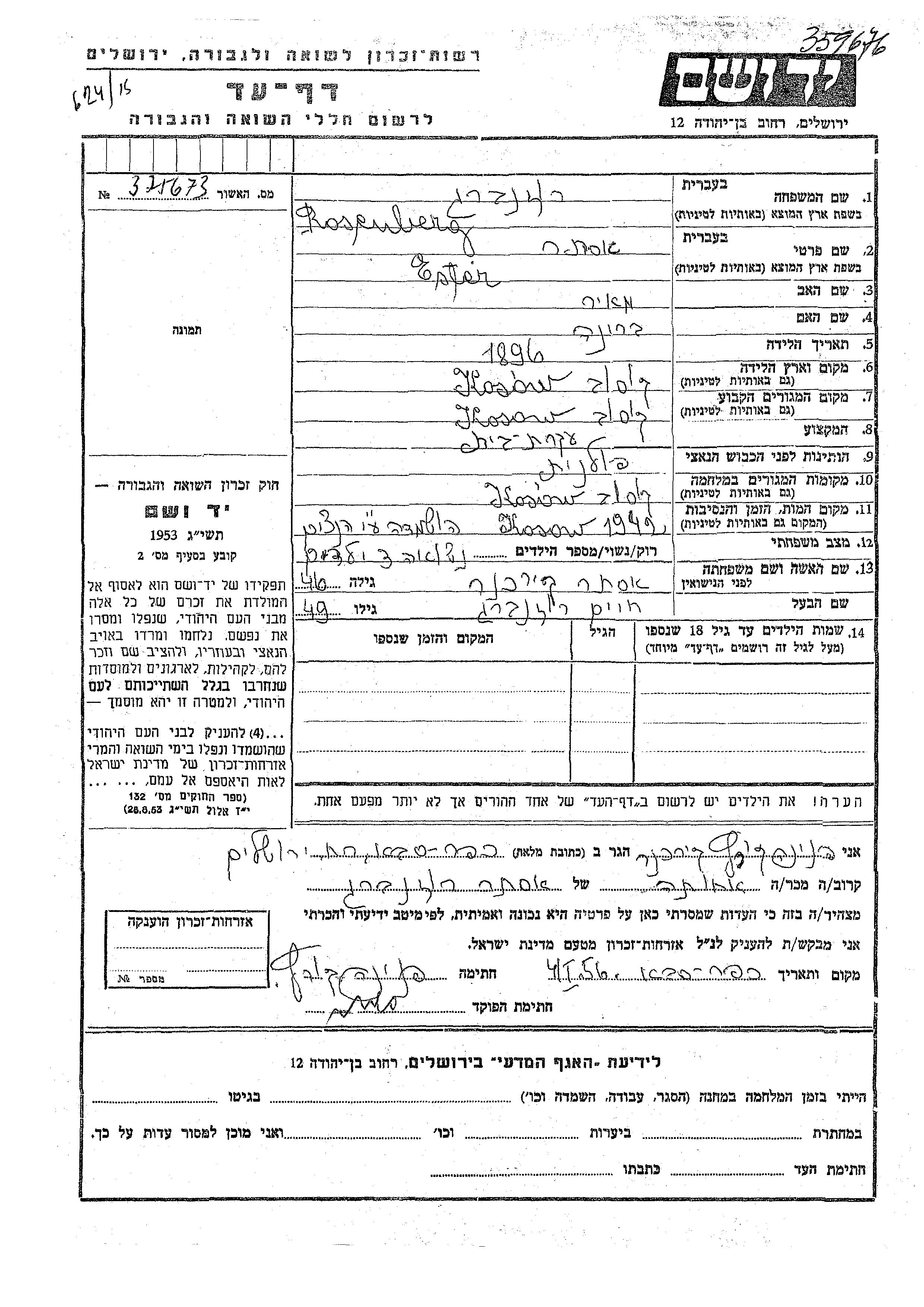 יד ושם - המפעל להנצחת השמות בדפי עד