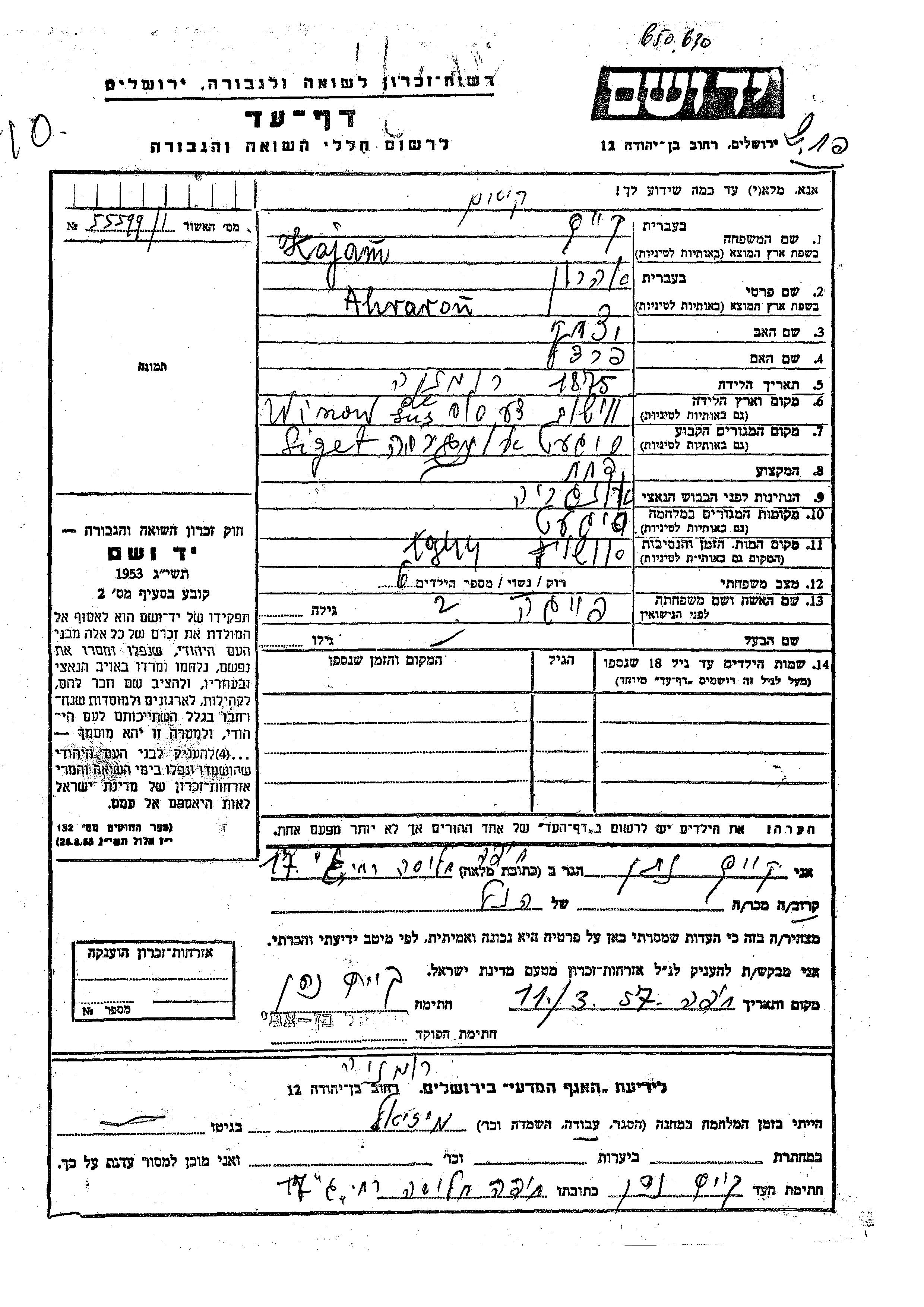יד ושם - המפעל להנצחת השמות בדפי עד