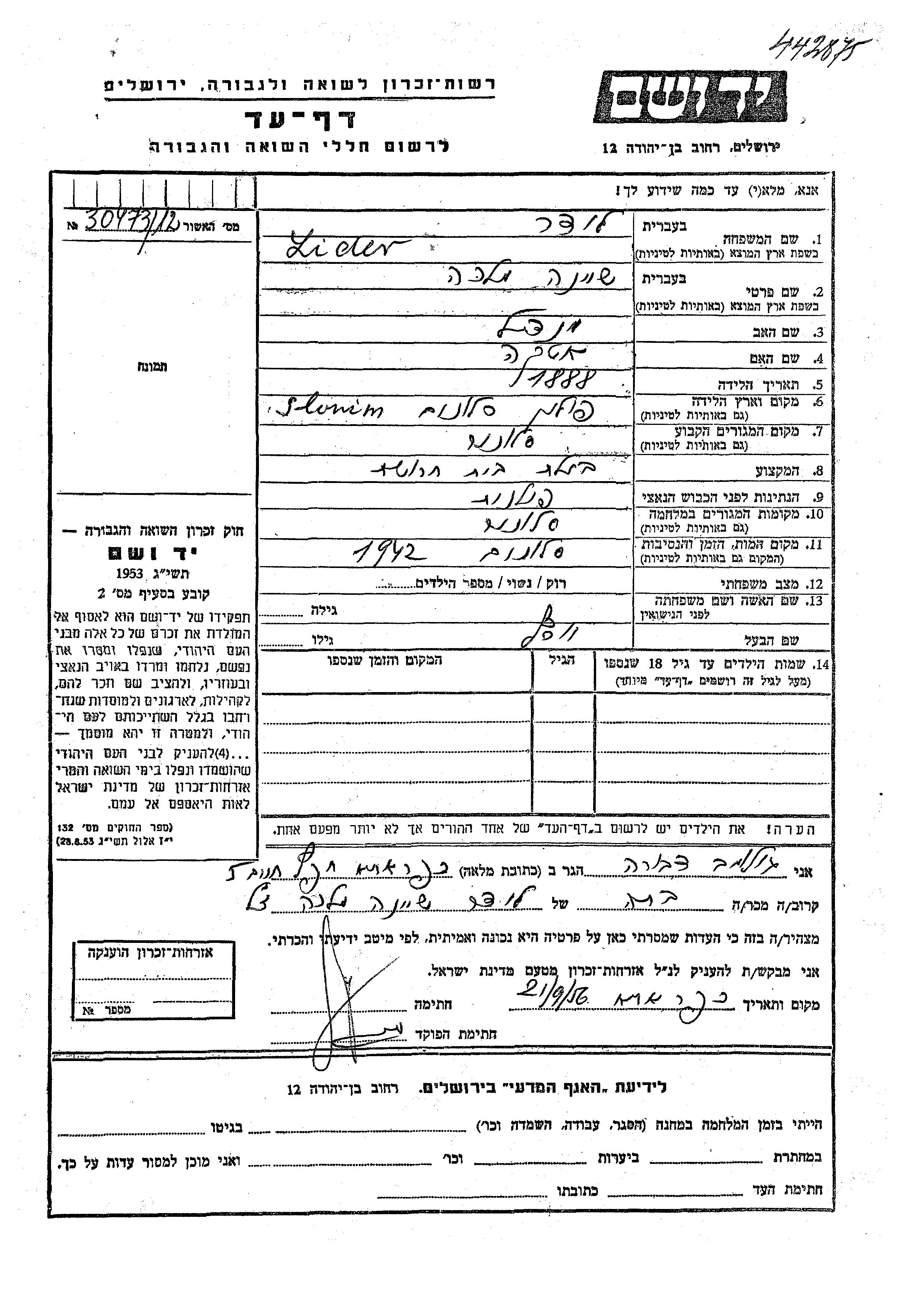 חיפוש שם מוסר דף העד. חיפוש לפי כל שם פרטי, כולל כינוי או שם חיבה
