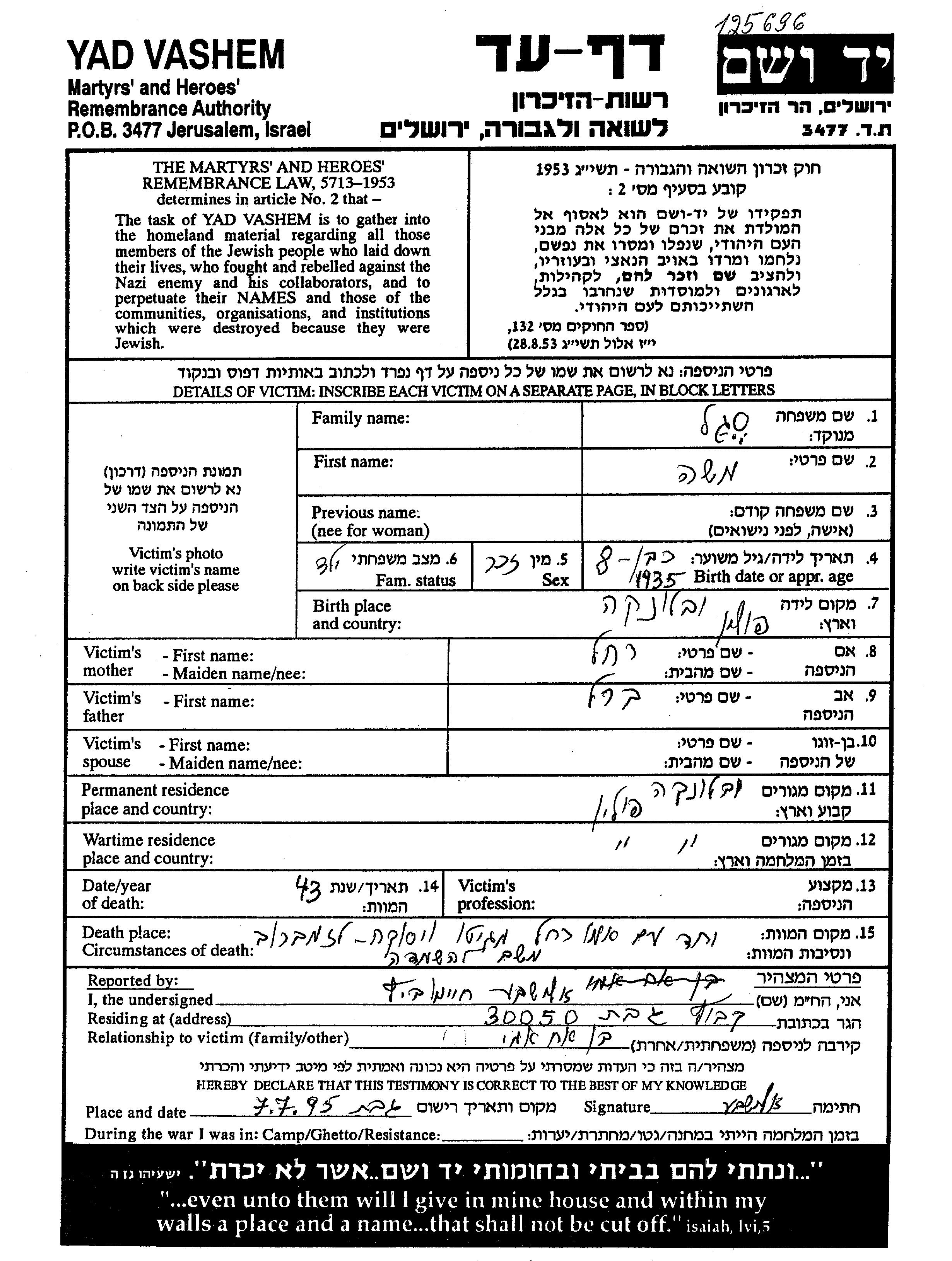 יד ושם - המפעל להנצחת השמות בדפי עד