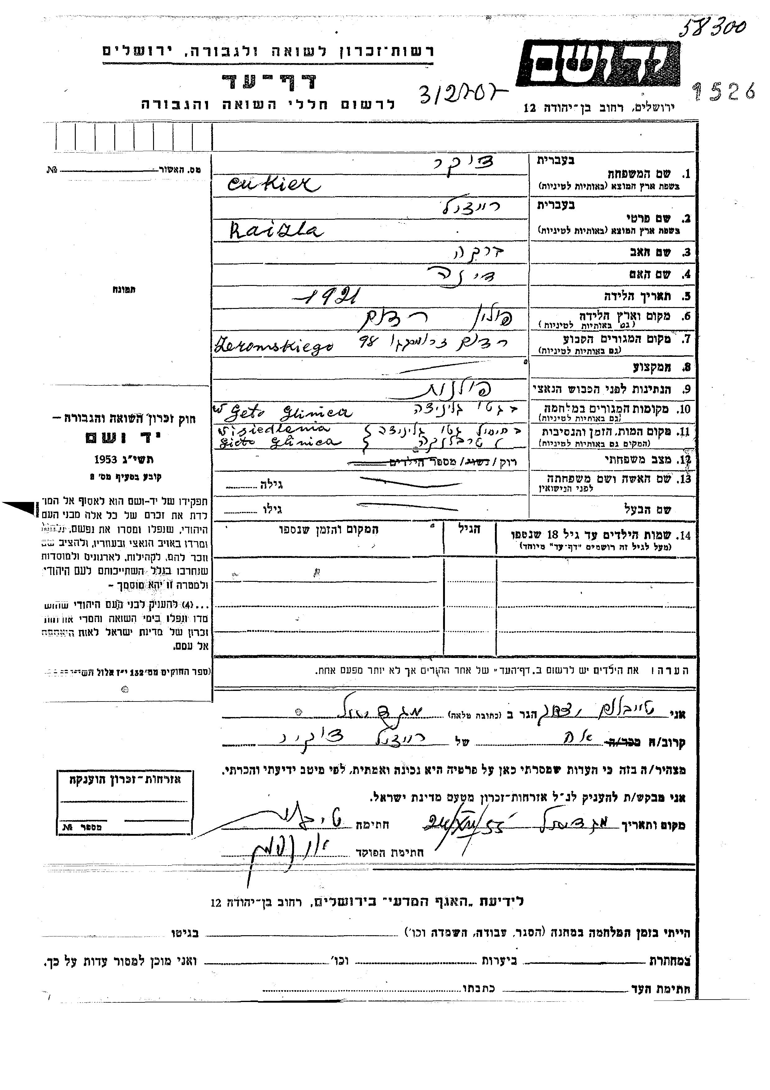 יד ושם - המפעל להנצחת השמות בדפי עד