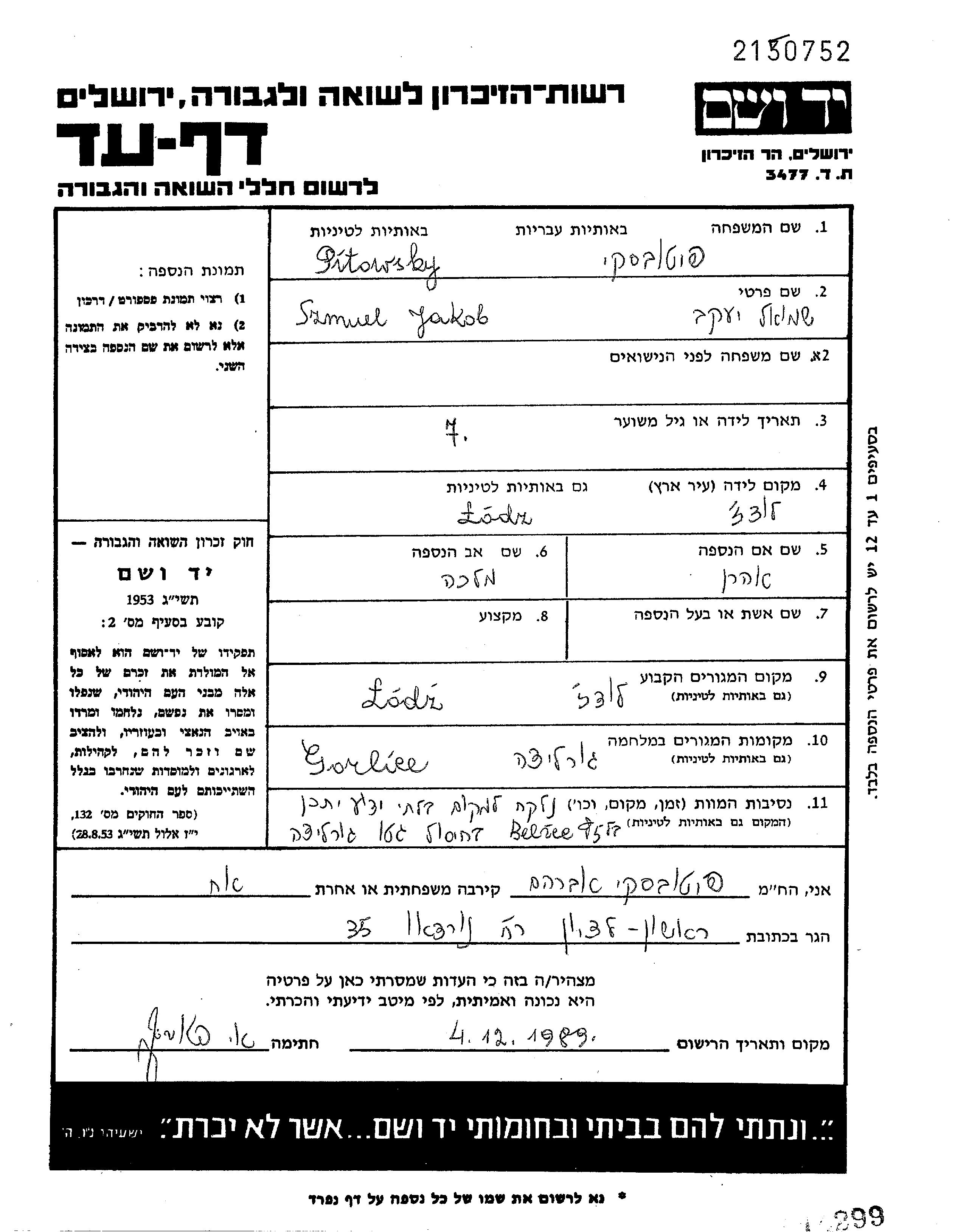 Pitowsky Szmuel Yakob Lodz, פולין דף-עד