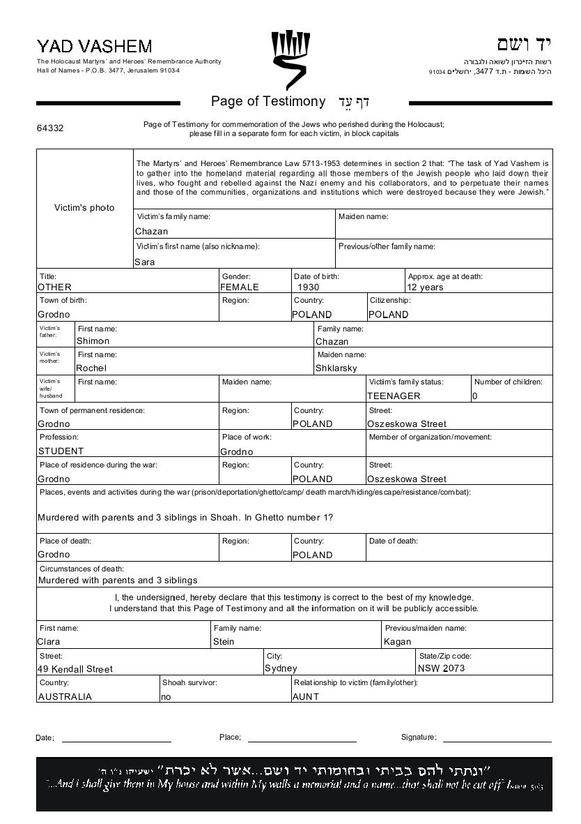 חיפוש שם מוסר דף העד. חיפוש לפי שם משפחה; כולל גם תוצאות חיפוש לפי שם הנעורים של אישה לפני הנישואין