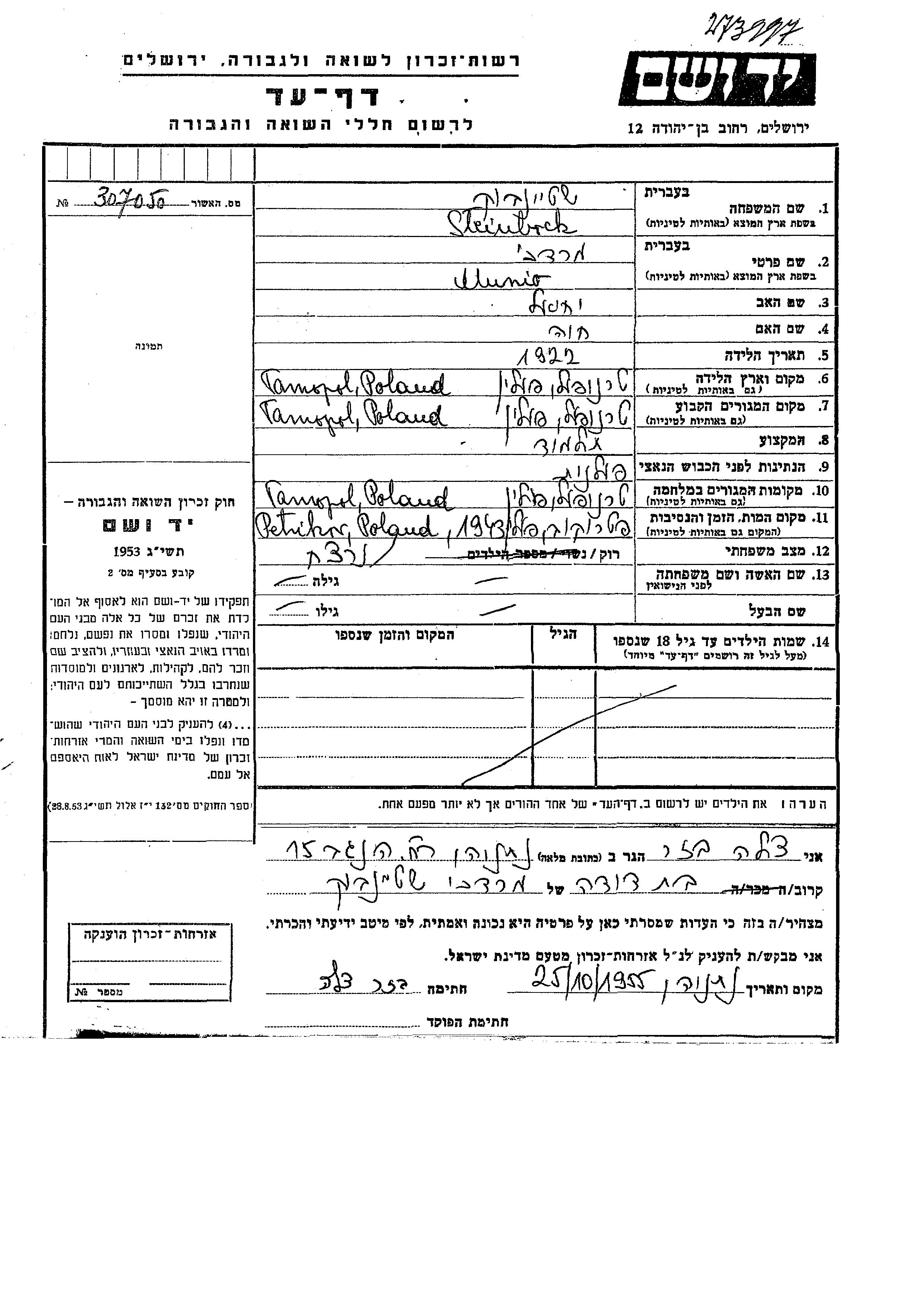 יד ושם - המפעל להנצחת השמות בדפי עד