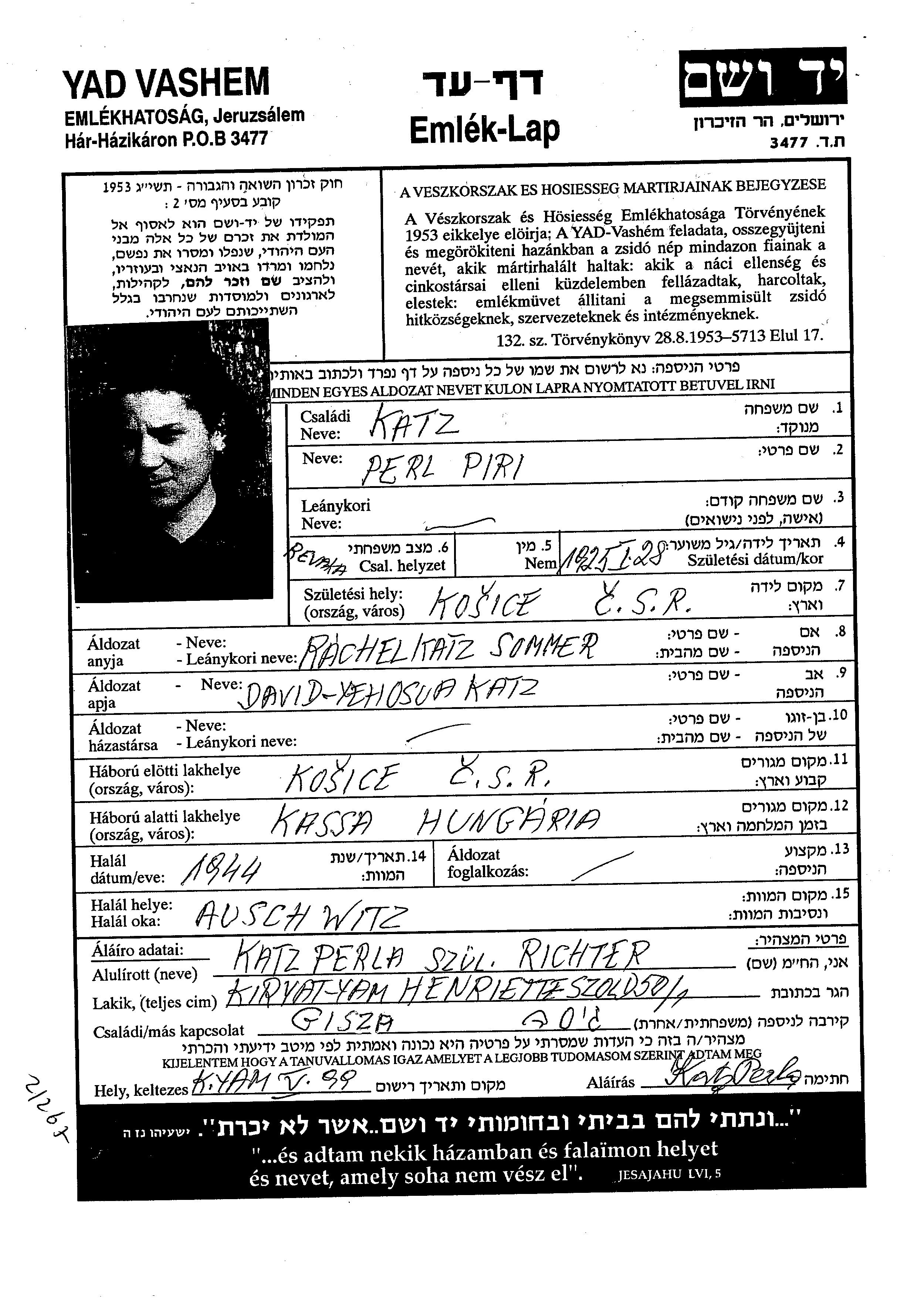 כץ | Perl | 1925 | Kosice, צ'כוסלובקיה | דף-עד |