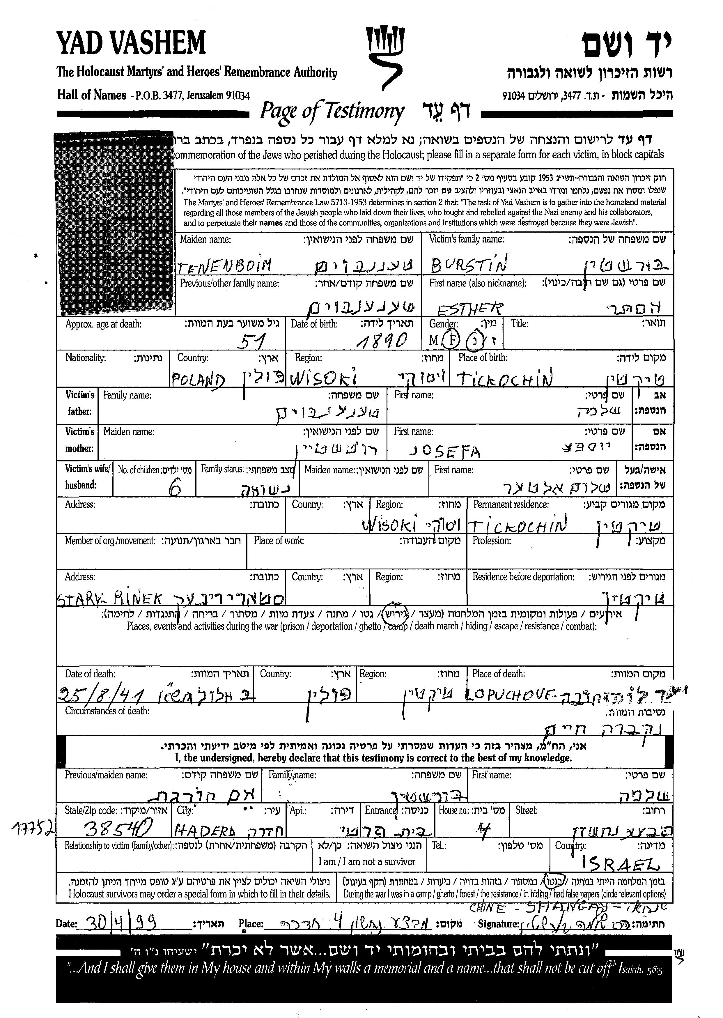 חיפוש שם מוסר דף העד. חיפוש לפי כל שם פרטי, כולל כינוי או שם חיבה