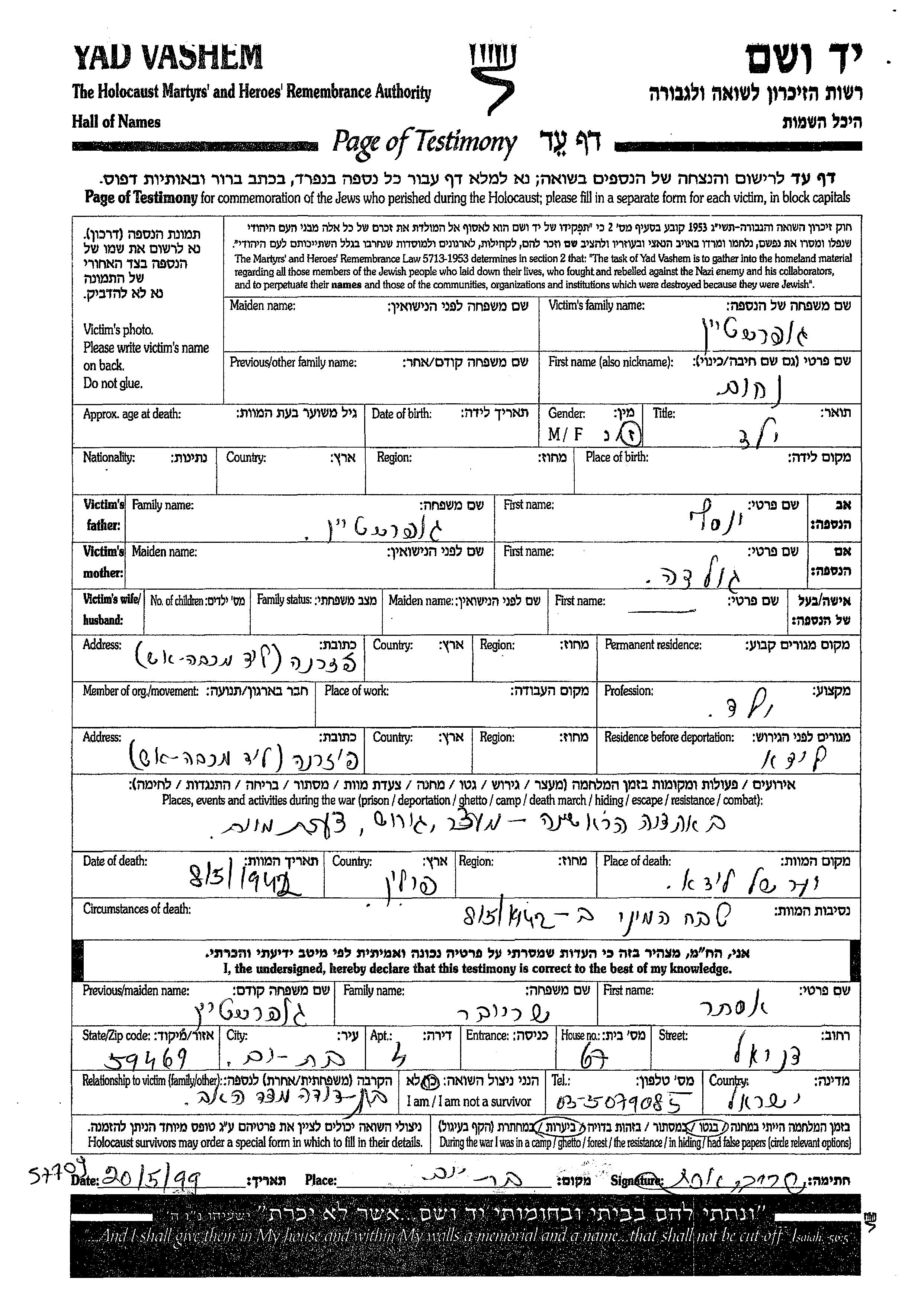 יד ושם - המפעל להנצחת השמות בדפי עד
