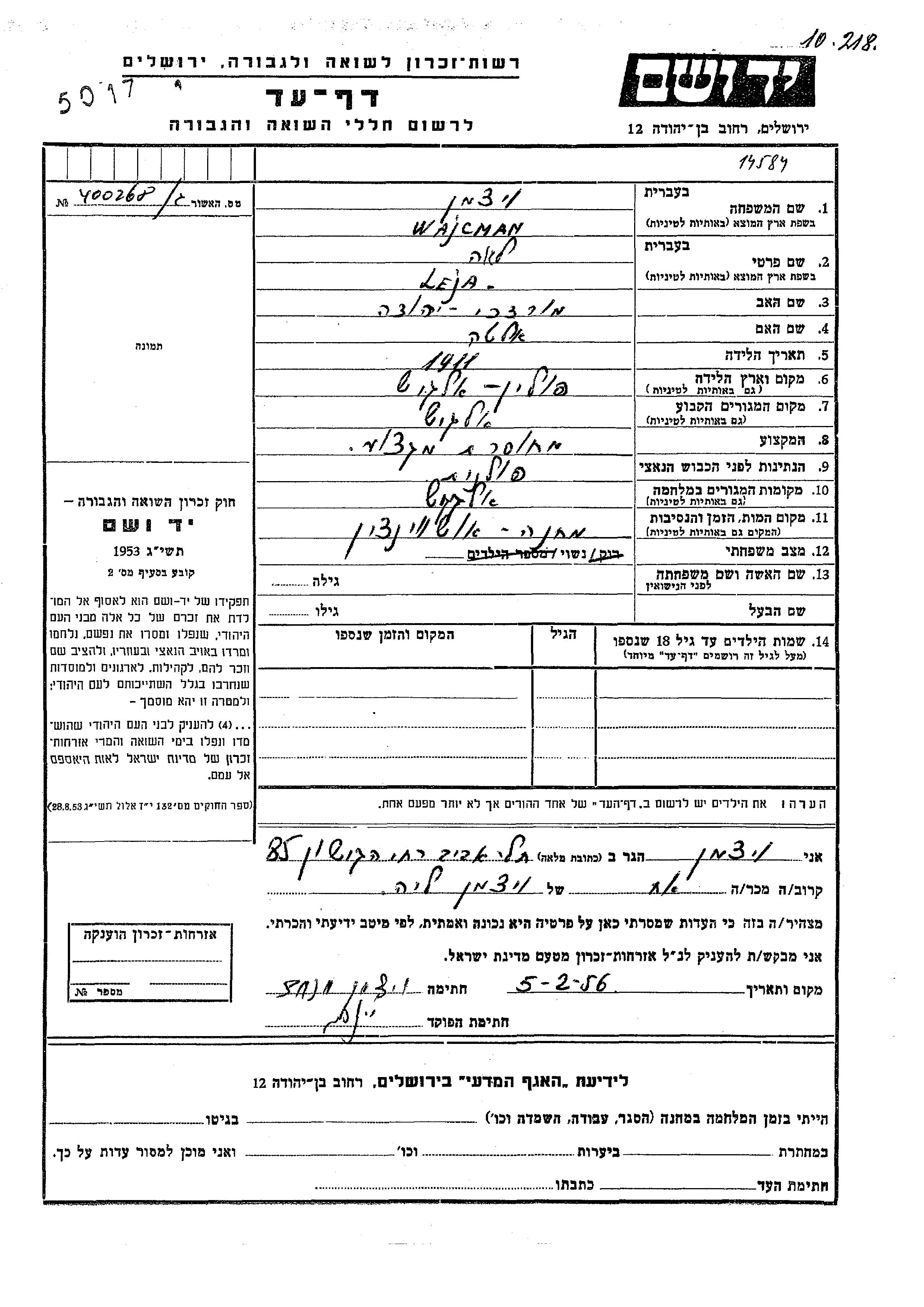 יד ושם - המפעל להנצחת השמות בדפי עד