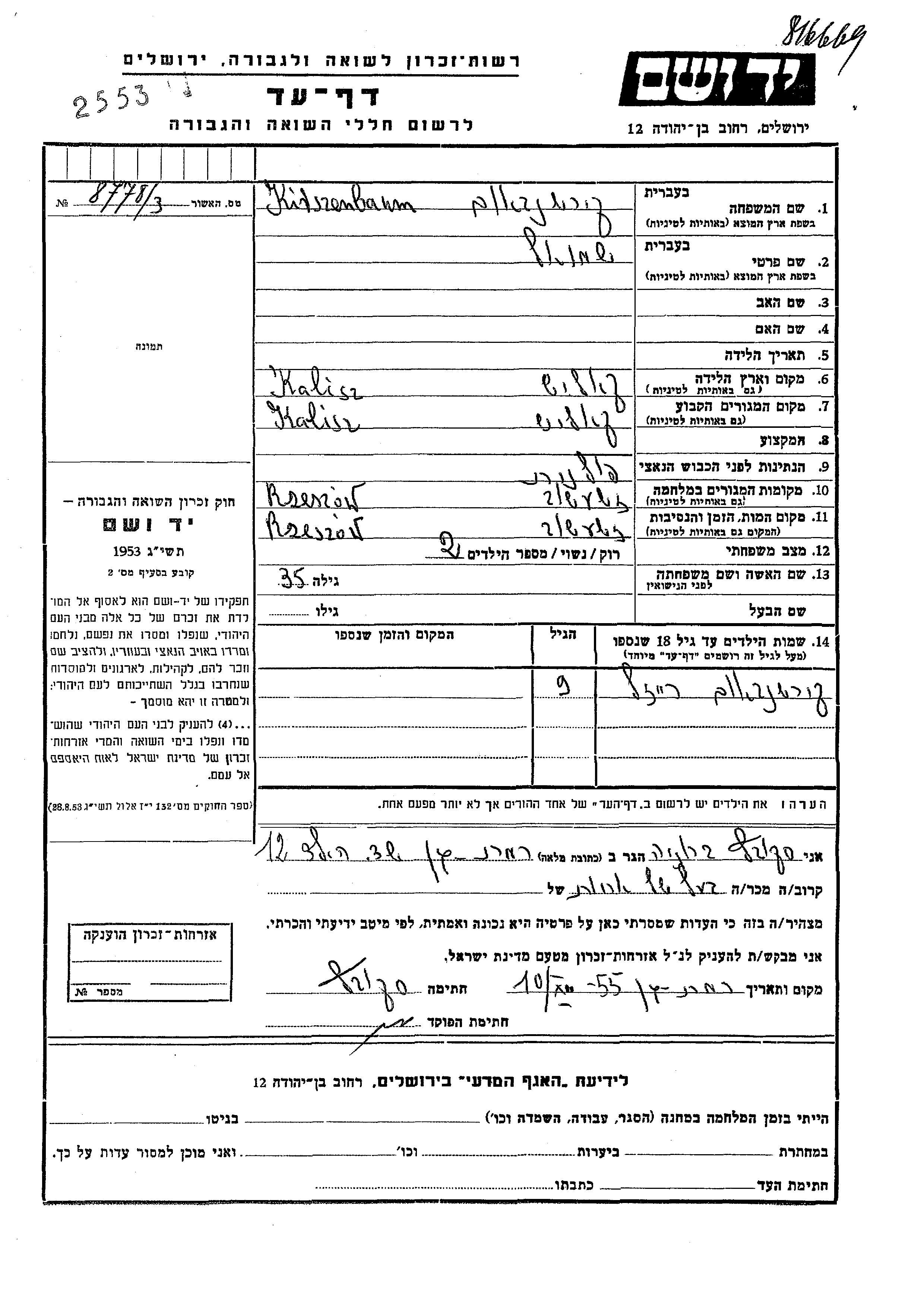 יד ושם - המפעל להנצחת השמות בדפי עד
