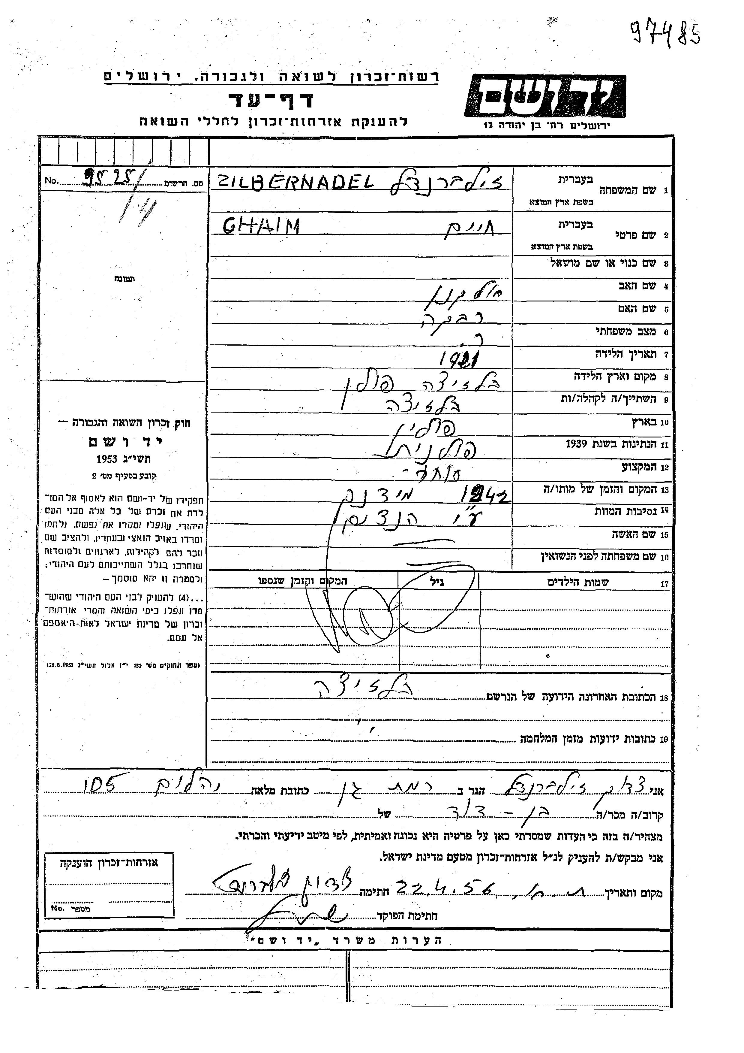 זילברנדל חיים 1921 Belzyce, פולין דף-עד