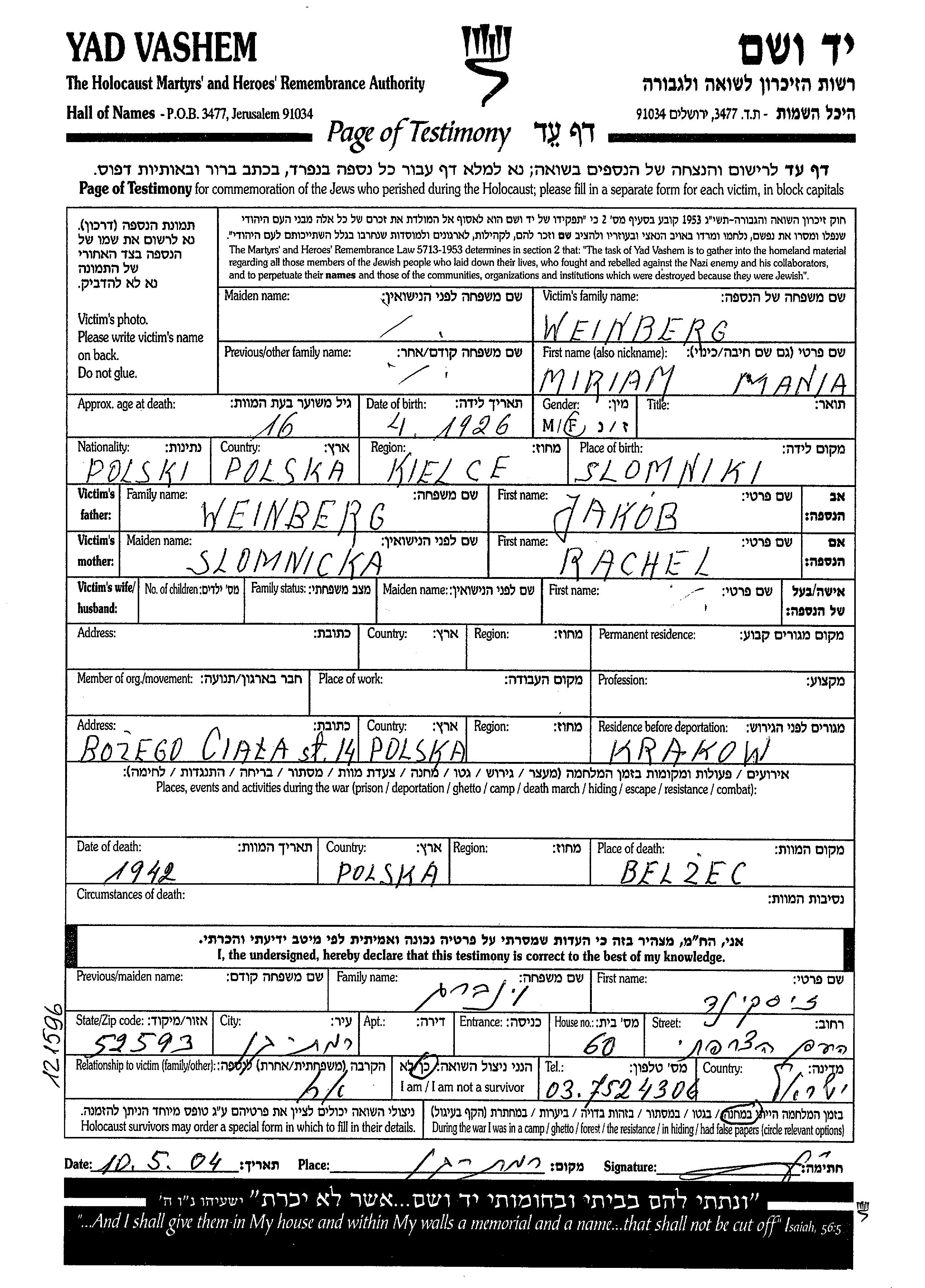 עיר/כפר, גטו/מחנה או אתר רצח או מחוז/אזור או מדינה. שם מקום ניתן לחפש רק בא-ב לטיני.