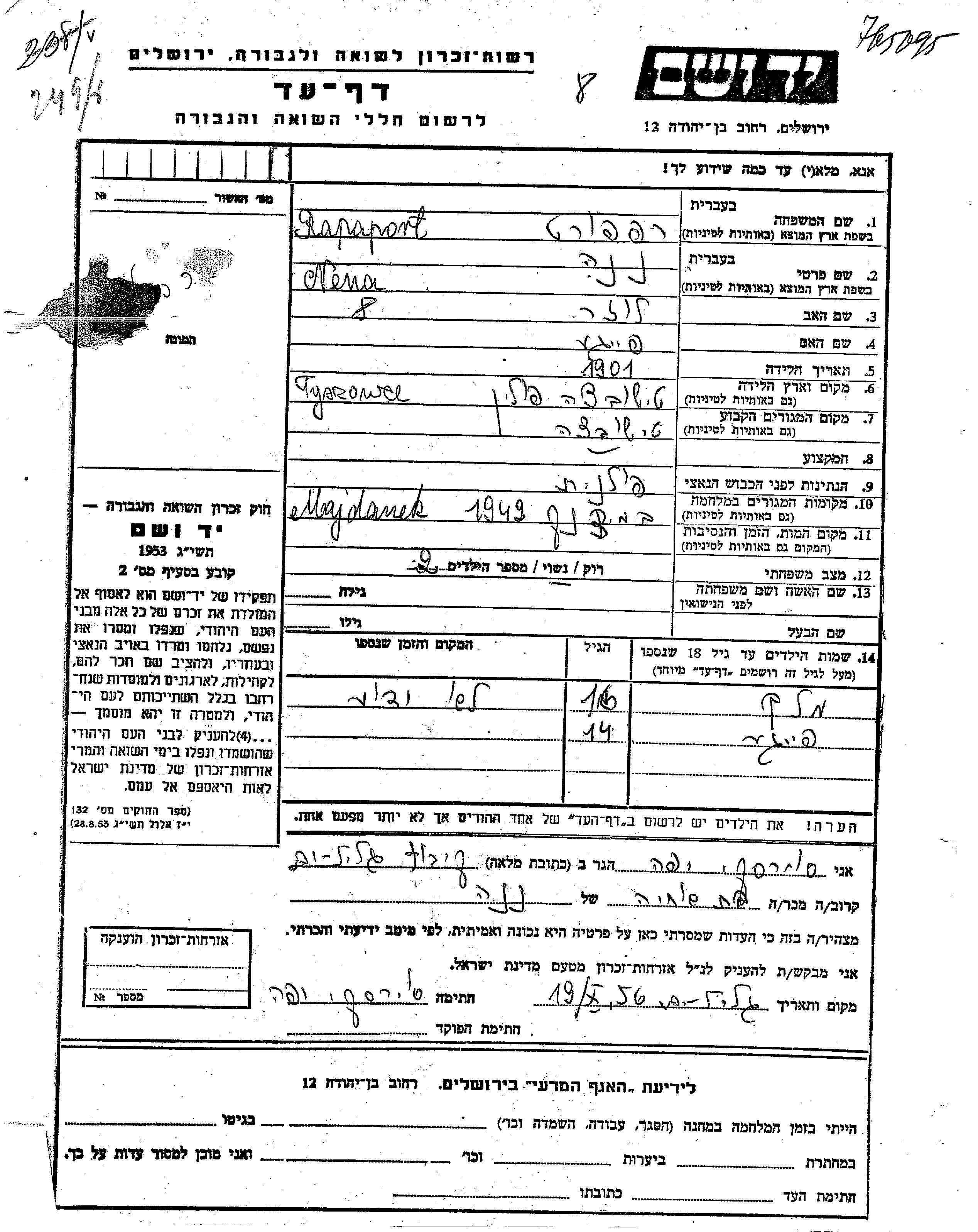רפפורט ננה 1901 Tyszowce, פולין דף-עד
