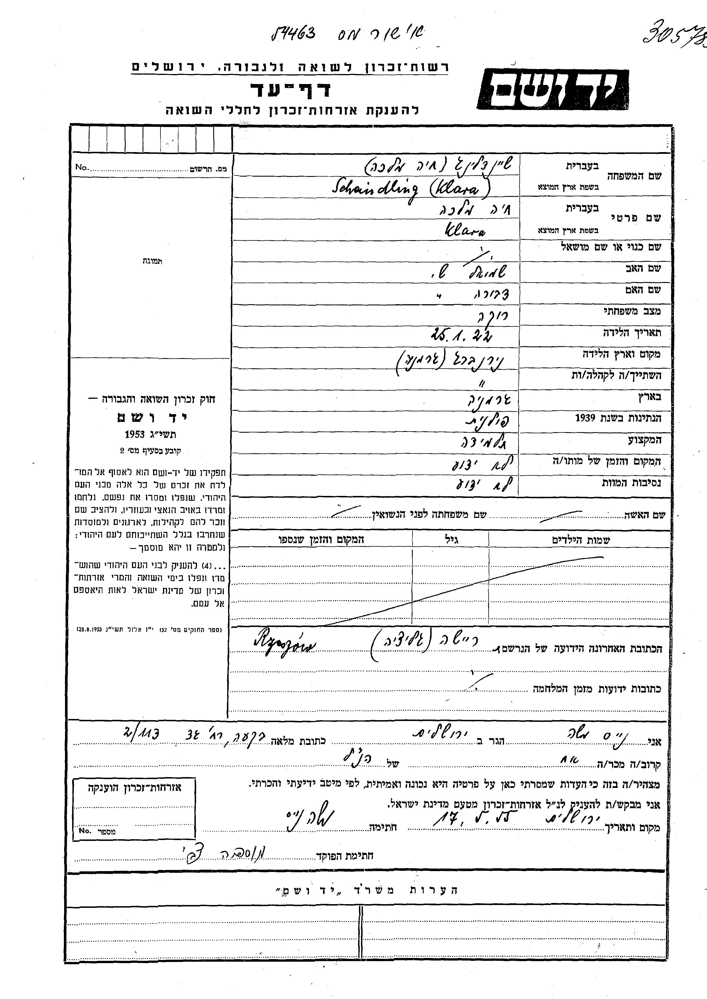 יד ושם - המפעל להנצחת השמות בדפי עד
