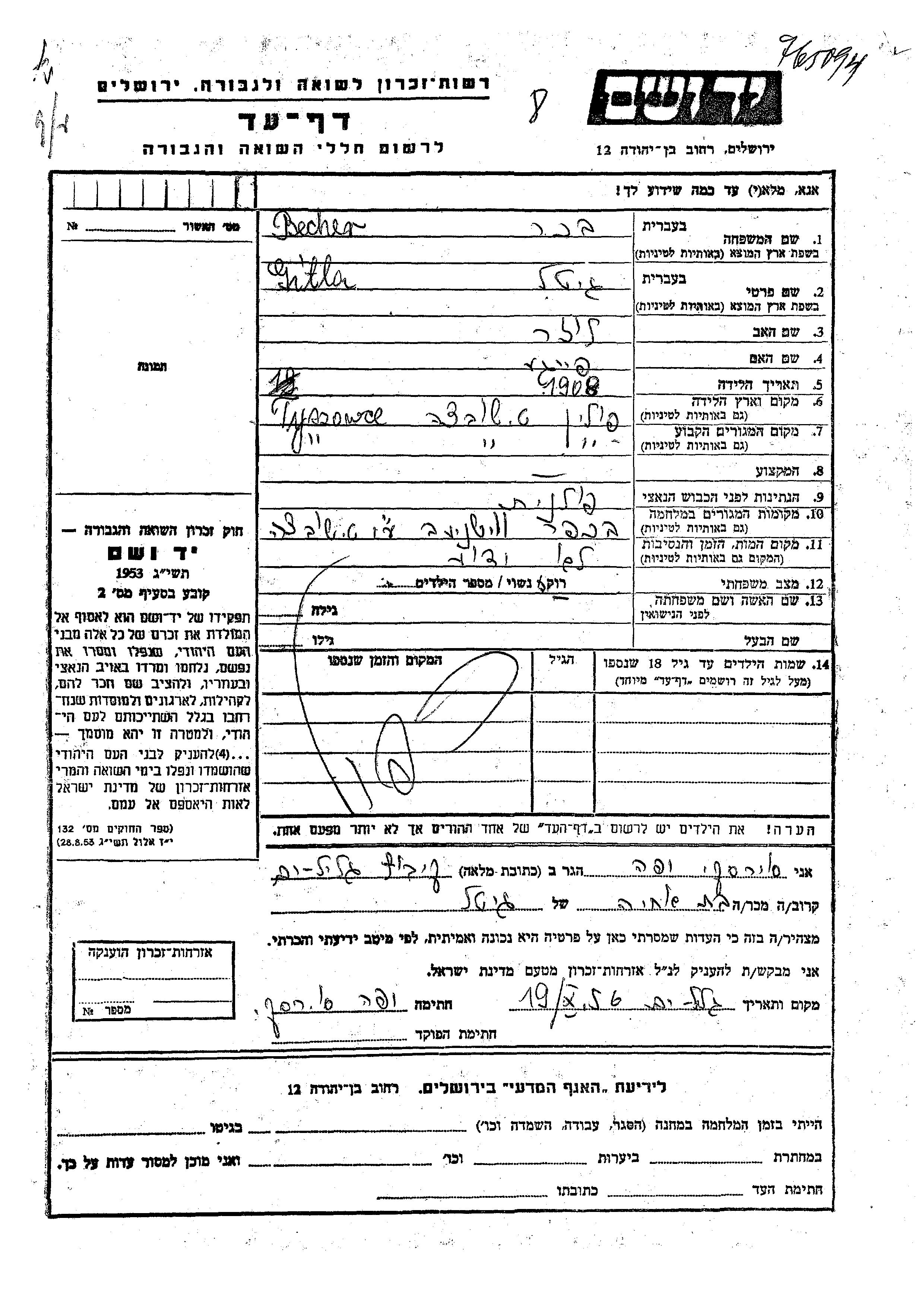 היא נרצחה בשואה. מקום המוות: מקום לא רשום.
