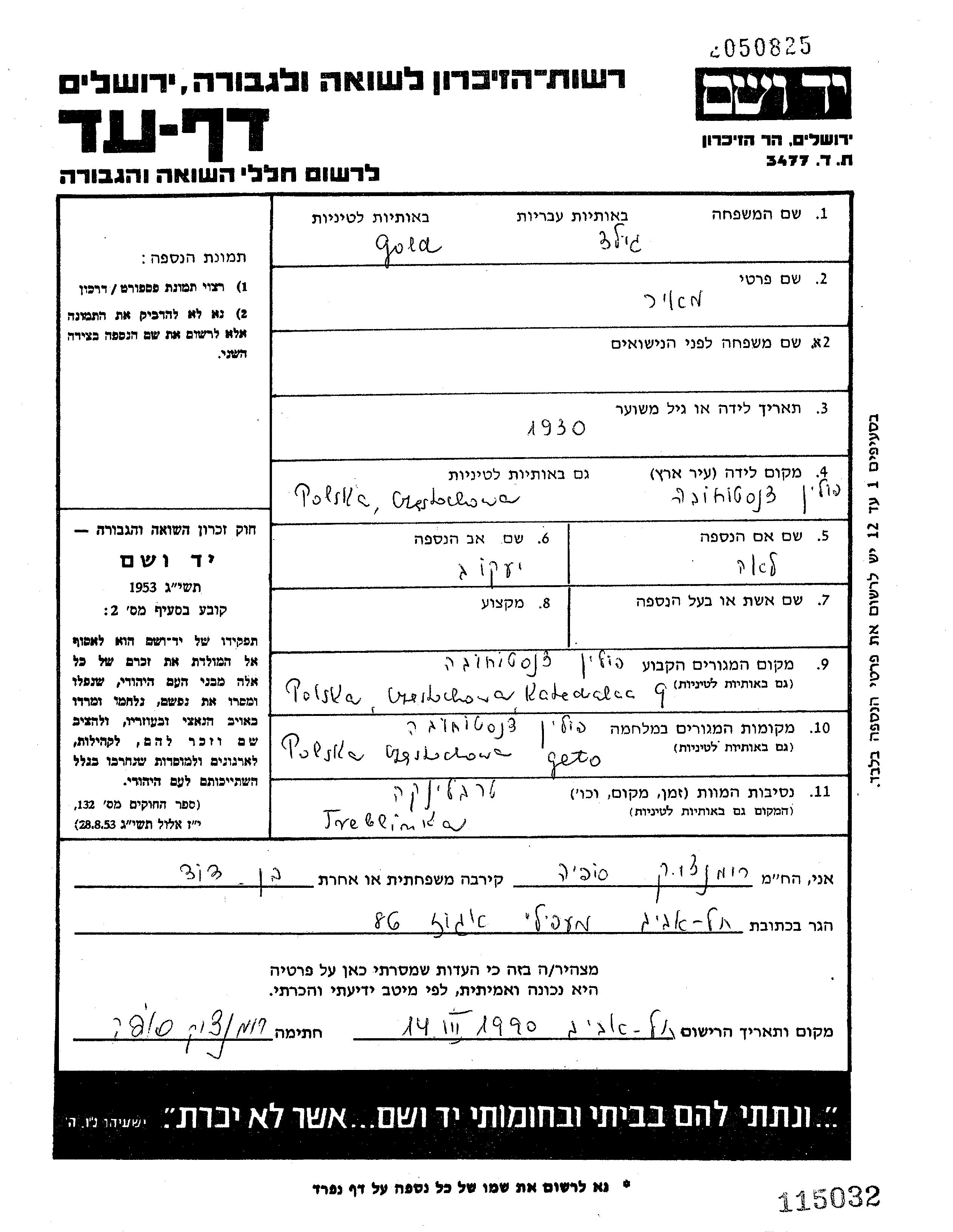 גולד | מאיר | 1930 | Czestochowa, פולין | דף-עד |