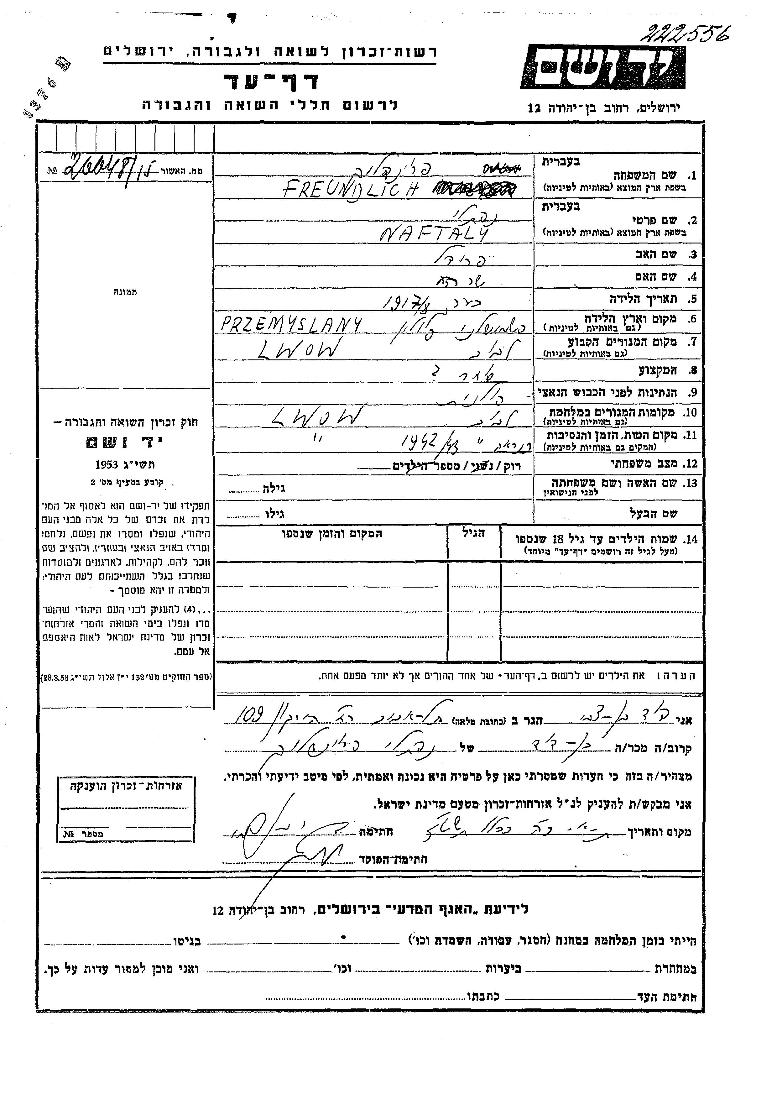 חיפוש שם מוסר דף העד. חיפוש לפי כל שם פרטי, כולל כינוי או שם חיבה