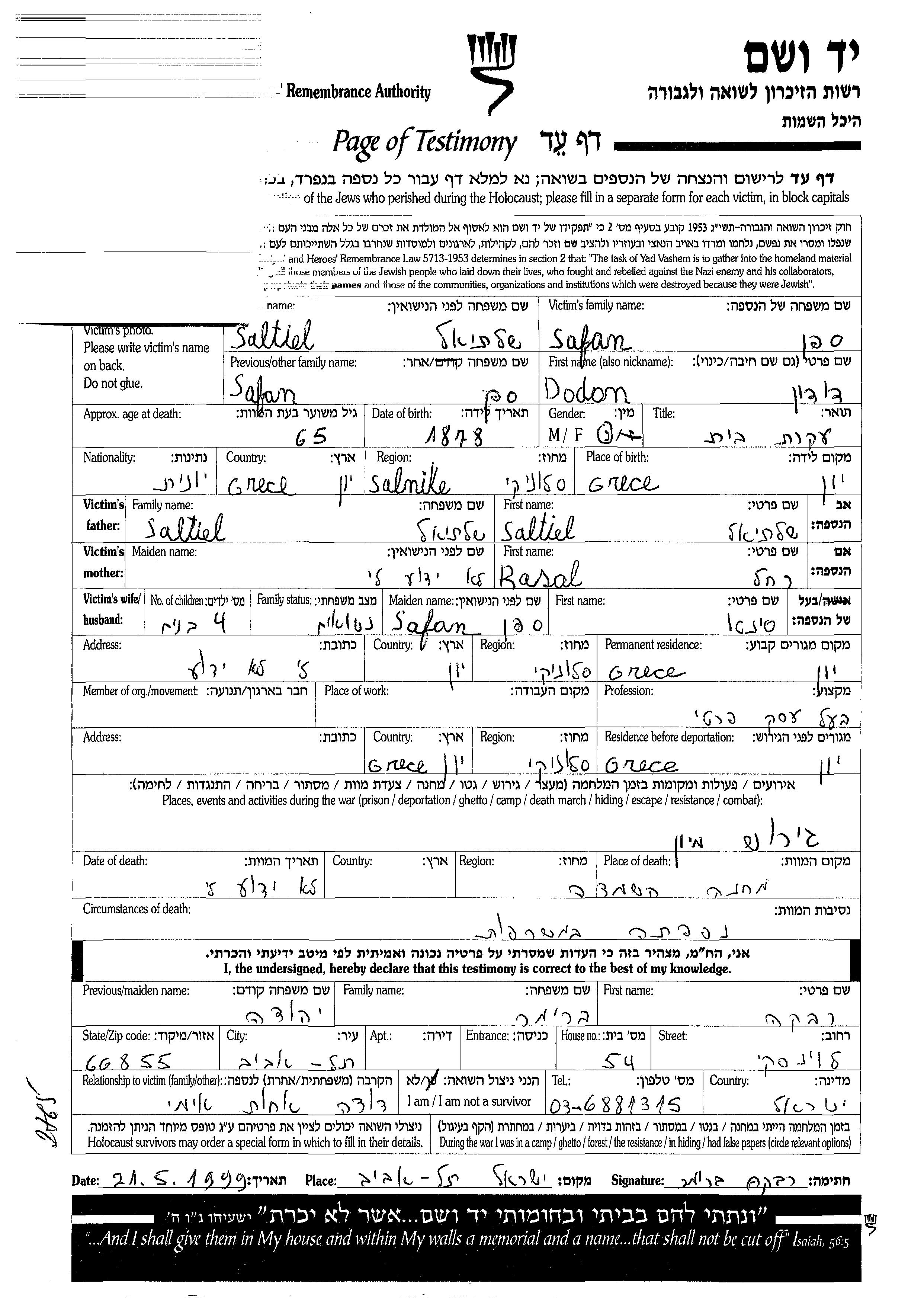 יד ושם - המפעל להנצחת השמות בדפי עד