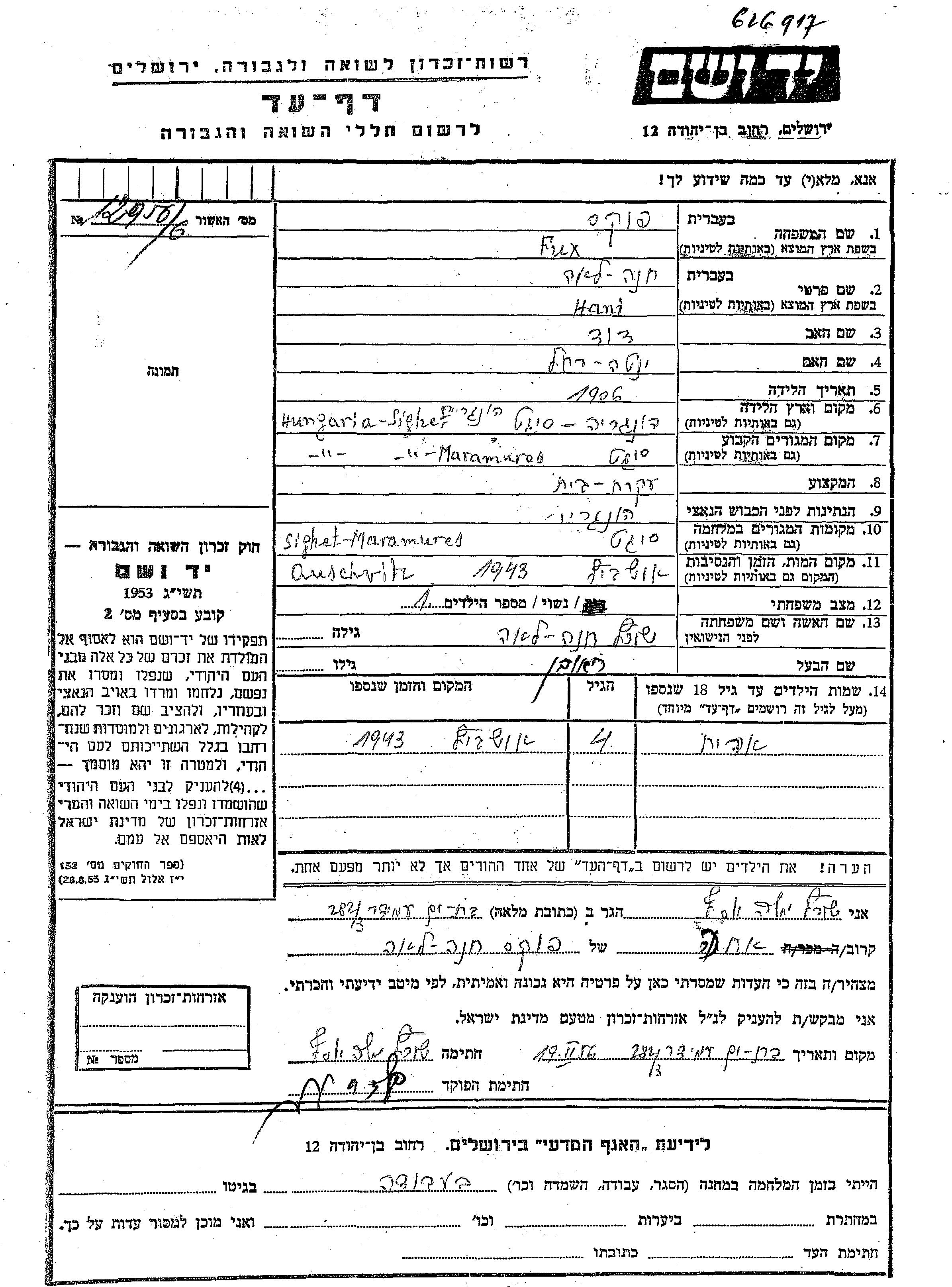 Fux Hani לאה 1906 Sighet, רומניה דף-עד