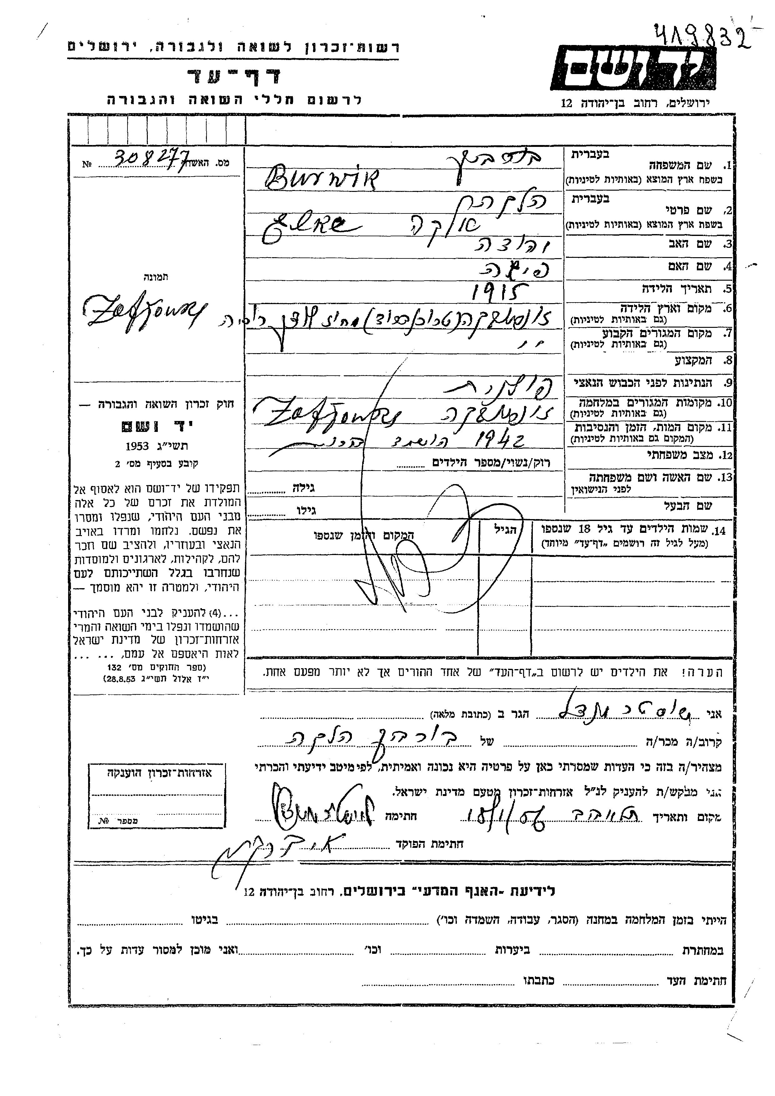 יד ושם - המפעל להנצחת השמות בדפי עד