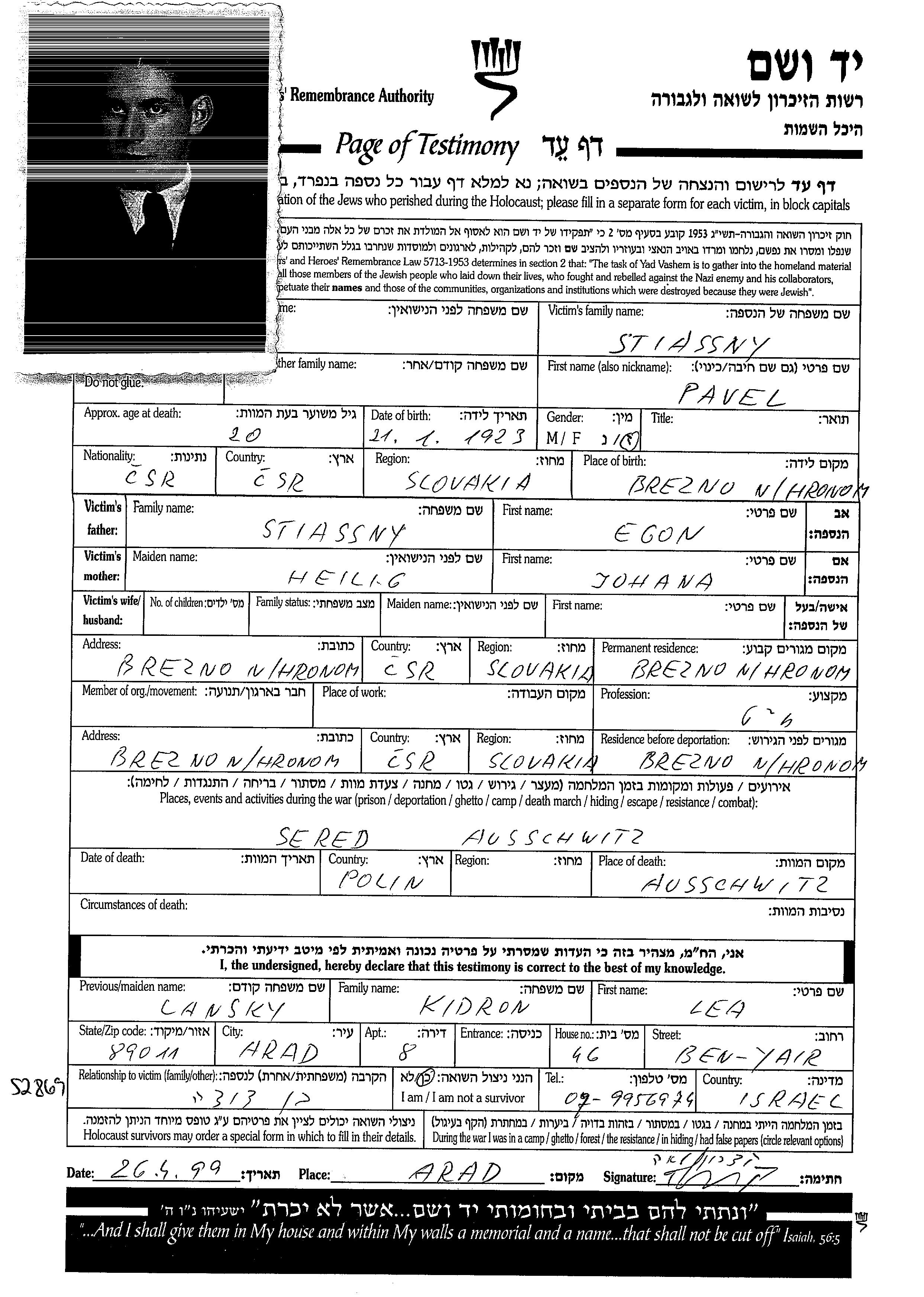 חיפוש שם מוסר דף העד. חיפוש לפי כל שם פרטי, כולל כינוי או שם חיבה