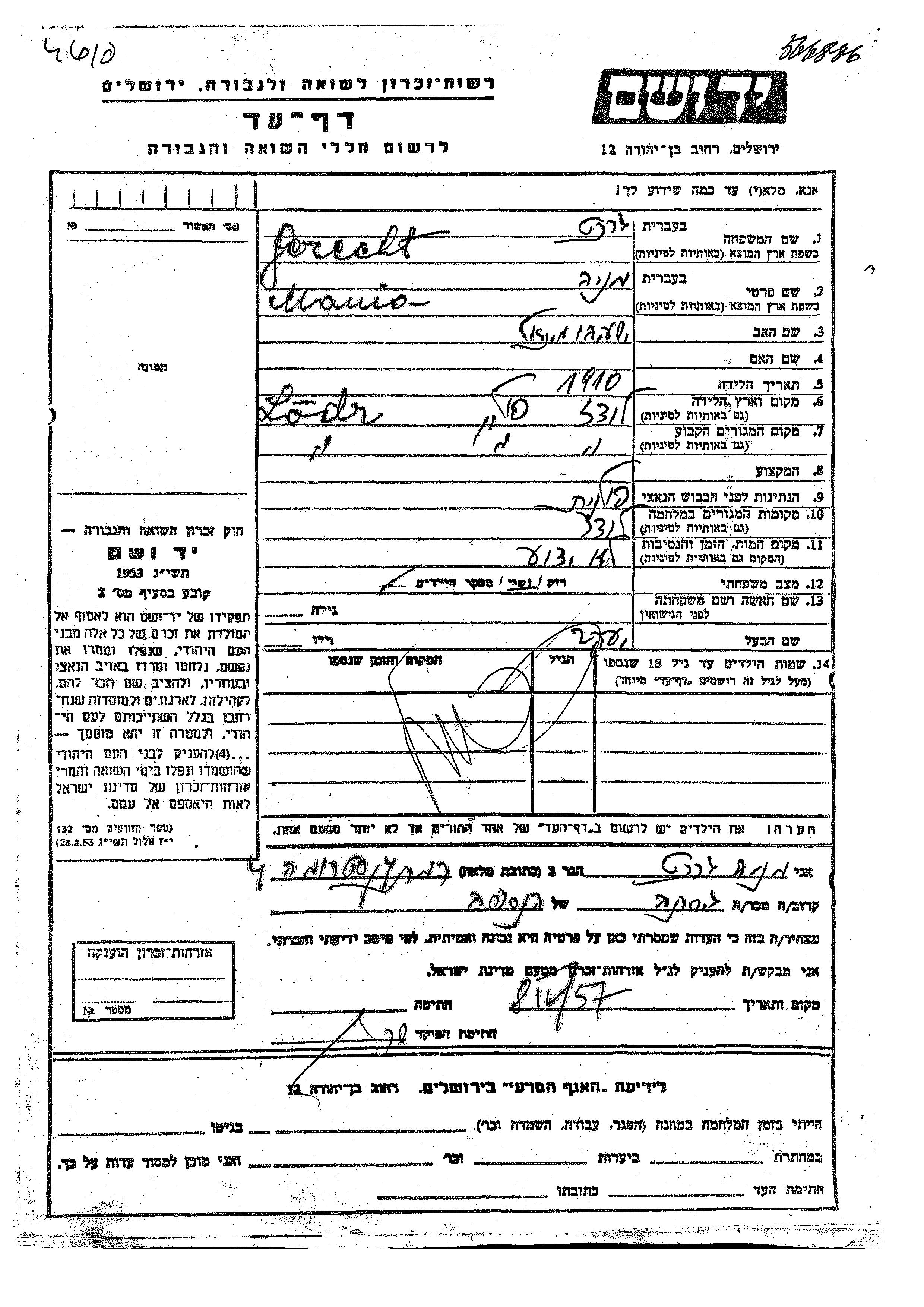 יד ושם - המפעל להנצחת השמות בדפי עד