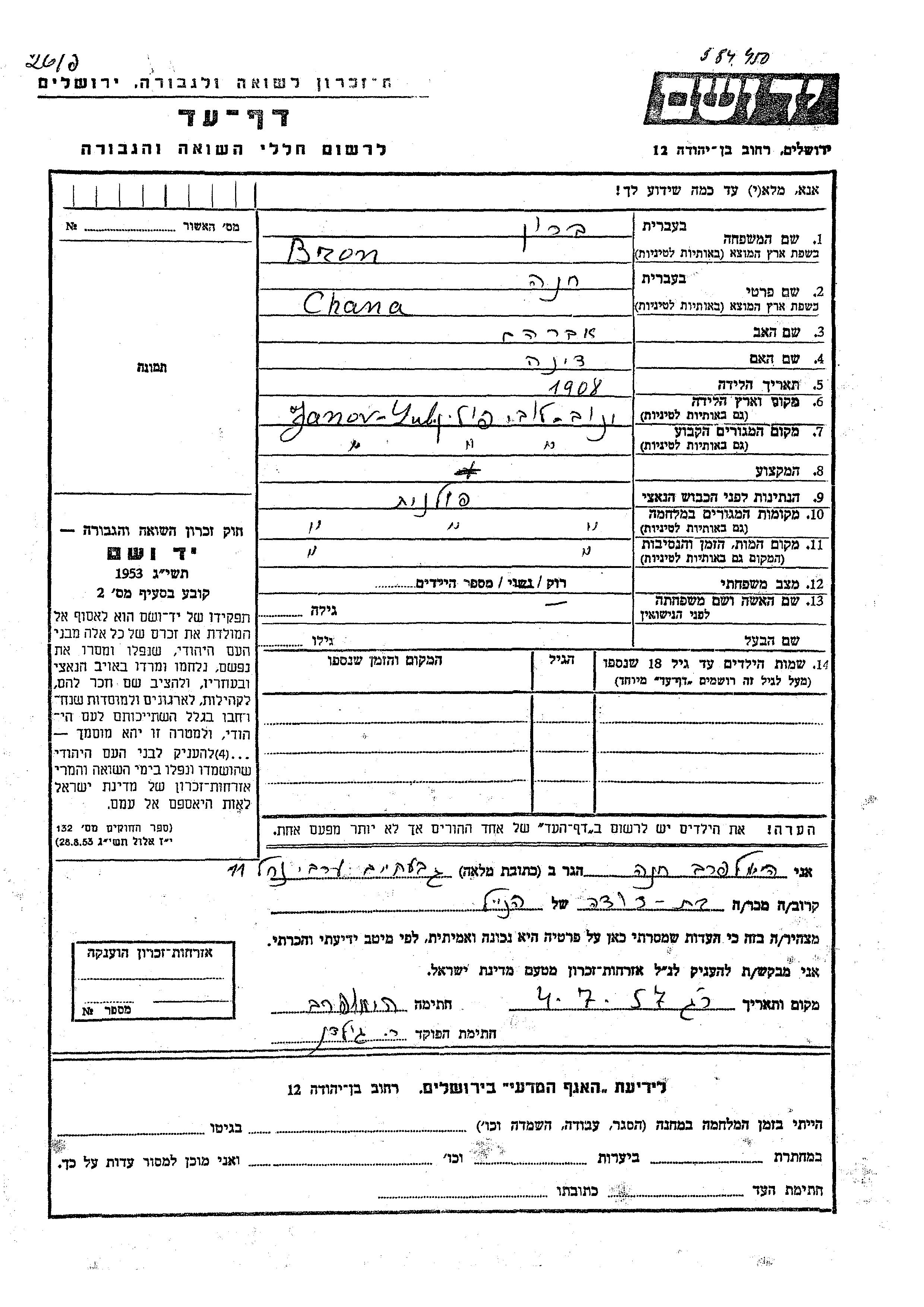 ברון חנה 1908 Janow Lubelski, פולין דף-עד