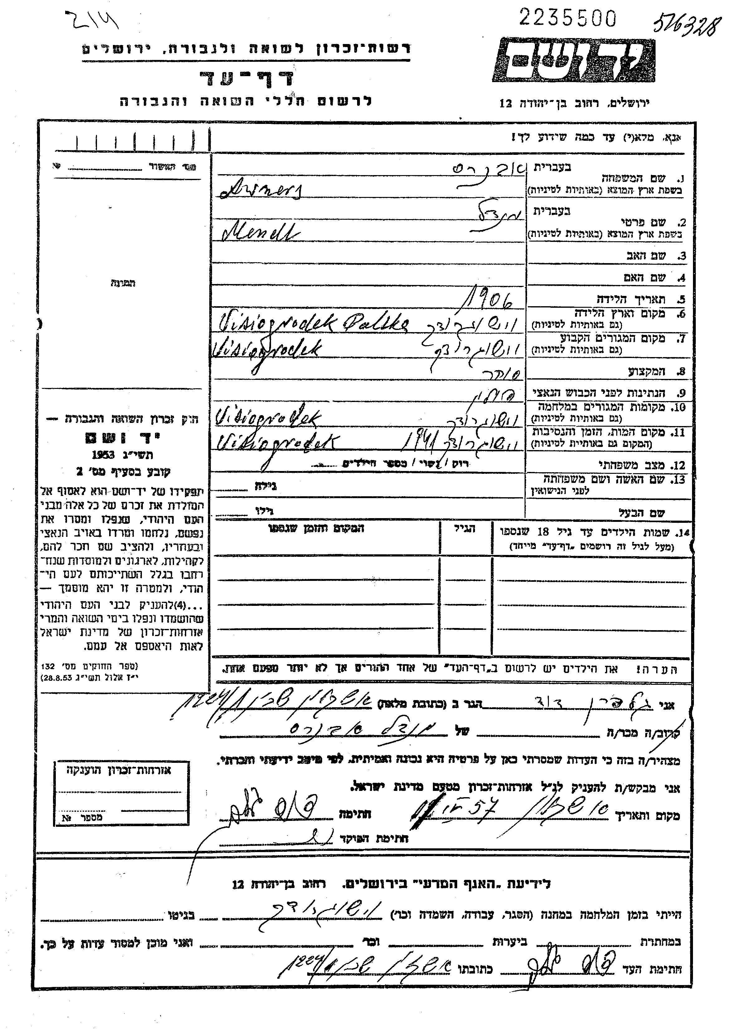 יד ושם - המפעל להנצחת השמות בדפי עד
