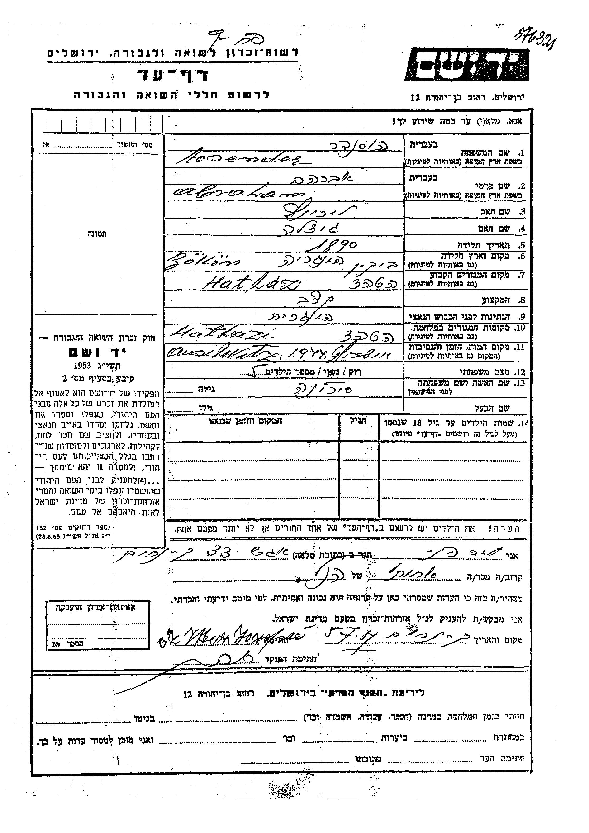 שם משפחה שם פרטי תאריך לידה מקום מקור המידע
