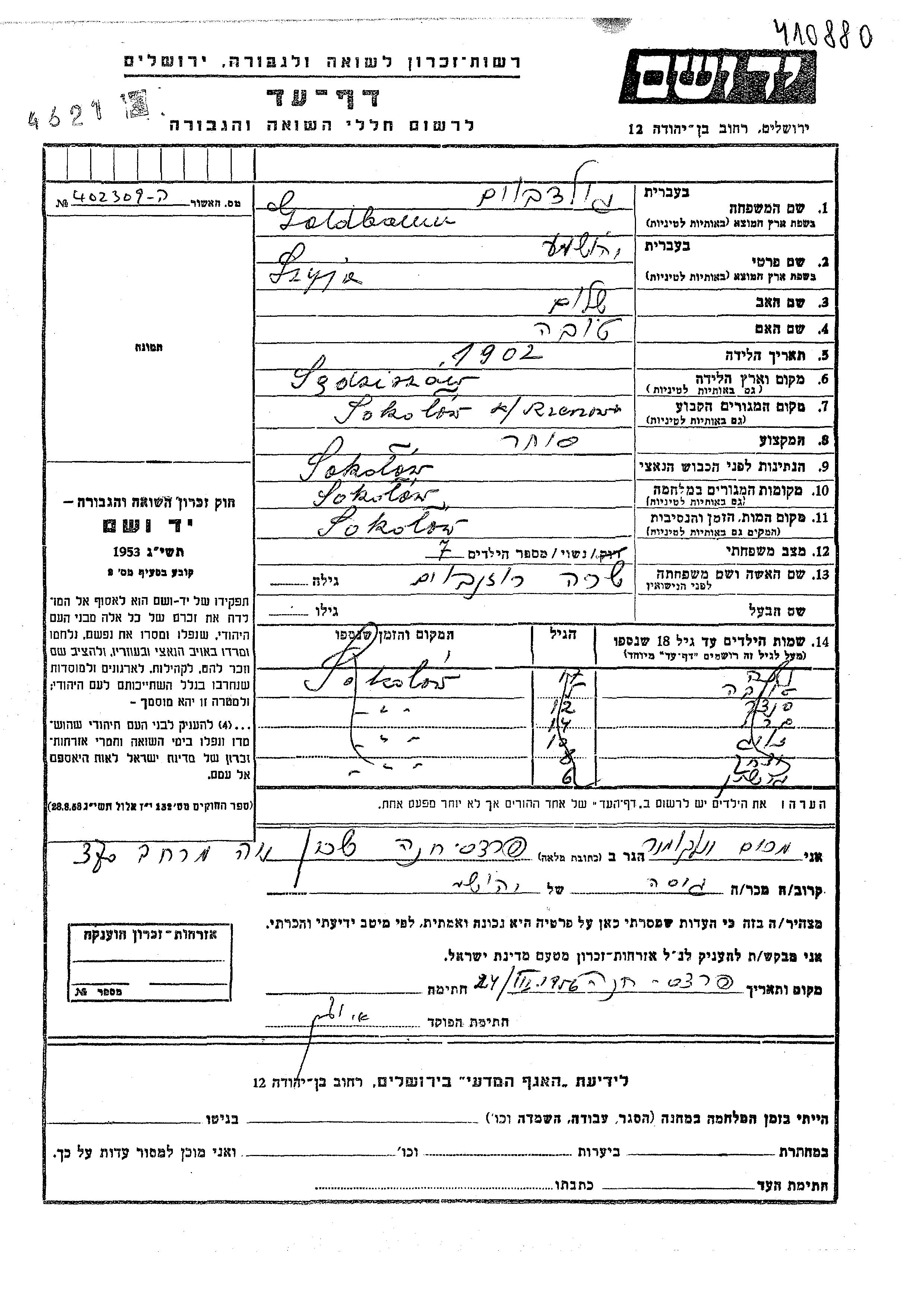 חיפוש שם מוסר דף העד. חיפוש לפי כל שם פרטי, כולל כינוי או שם חיבה