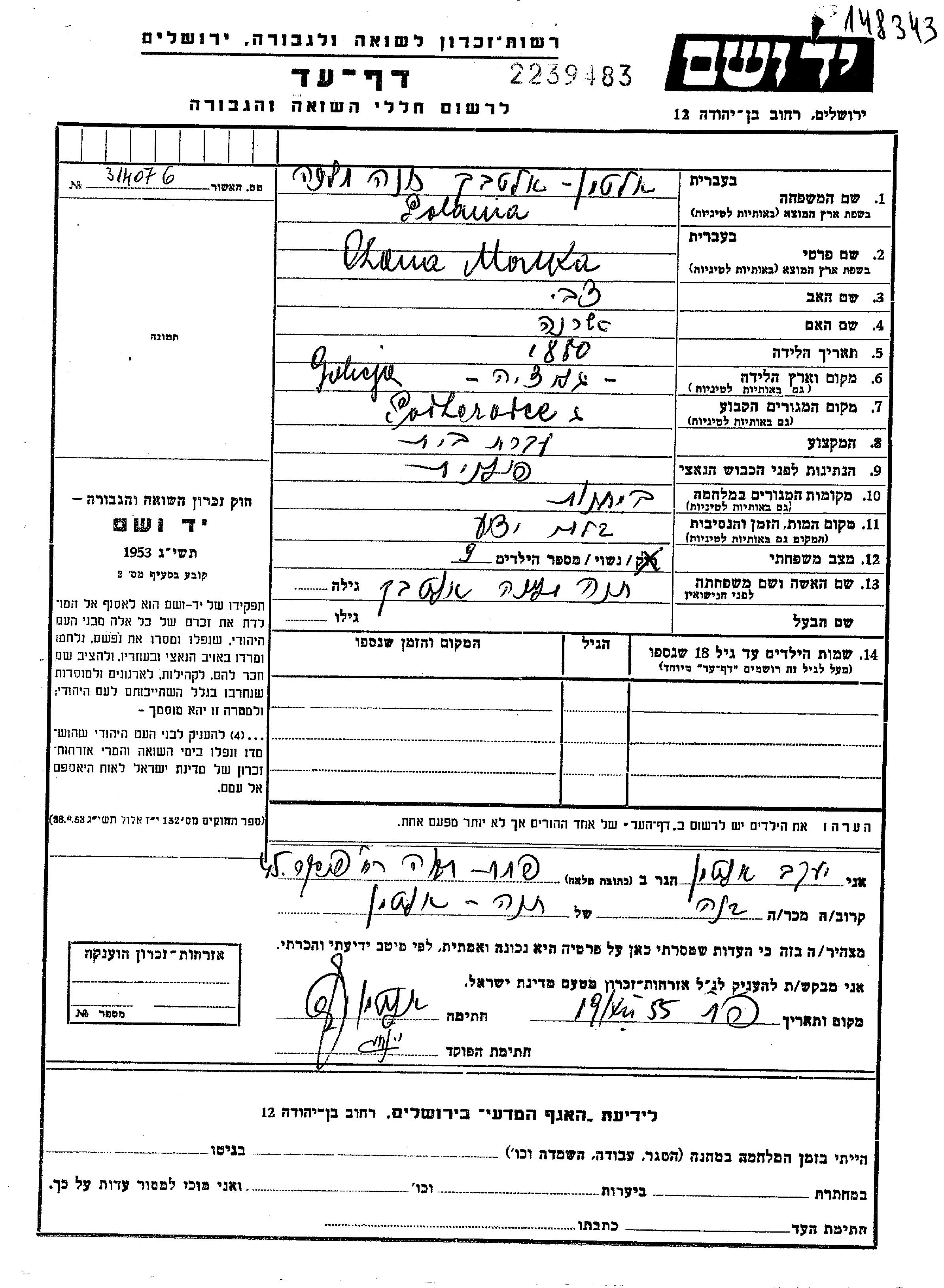יד ושם - המפעל להנצחת השמות בדפי עד