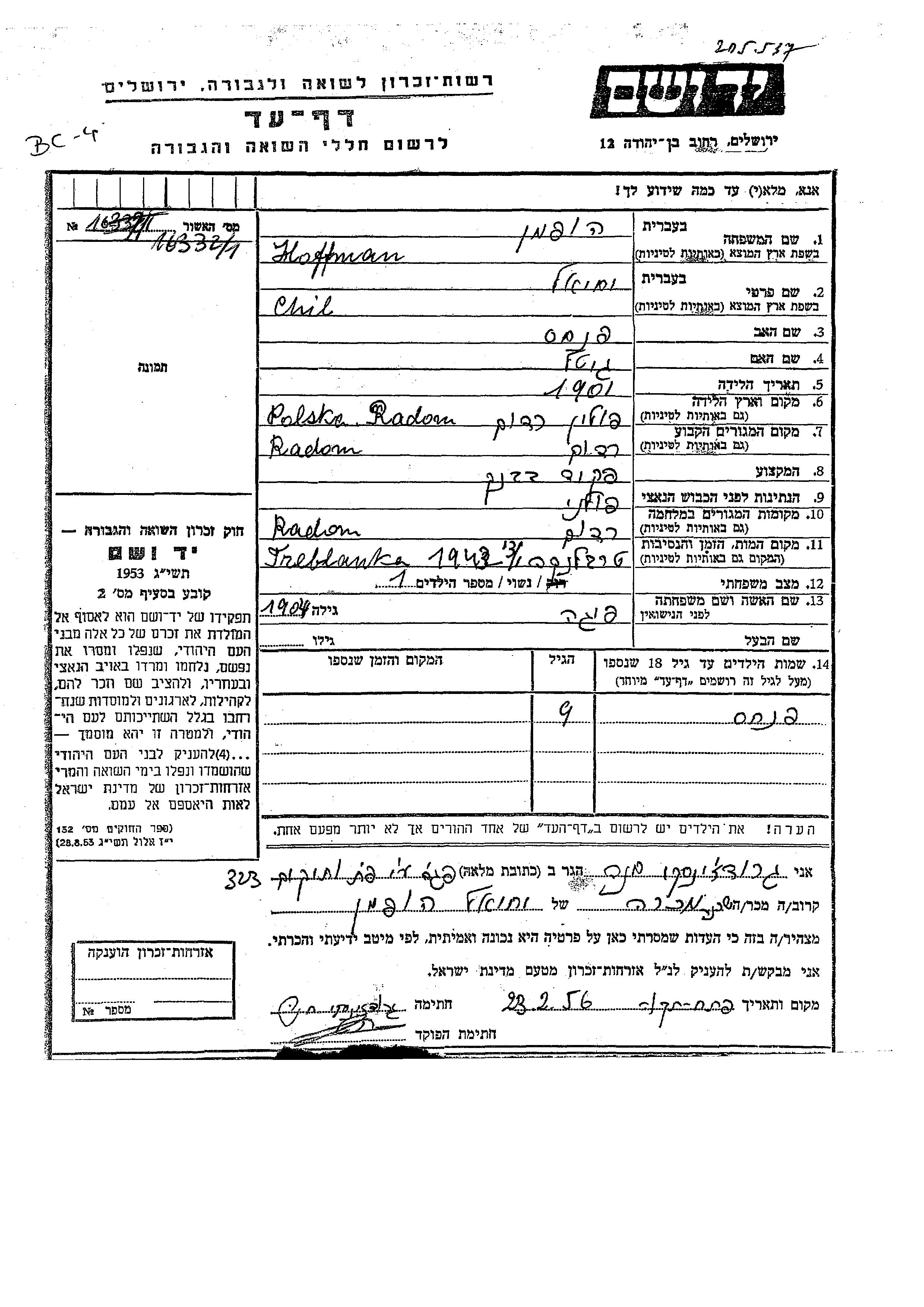 Hoffman Chil Icek 1901 Radom, פולין רשימת אסירים בגטו