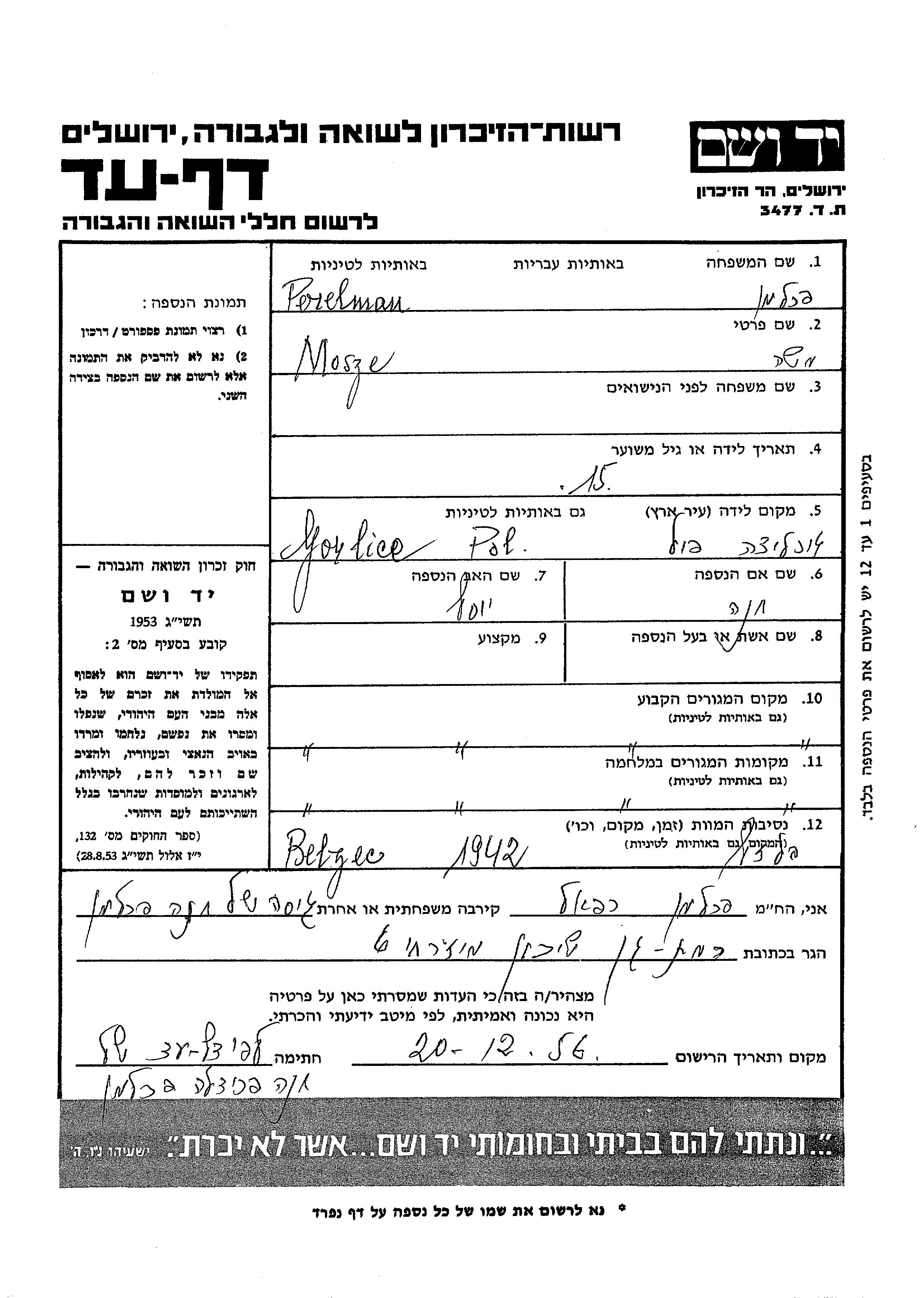 יד ושם - המפעל להנצחת השמות בדפי עד