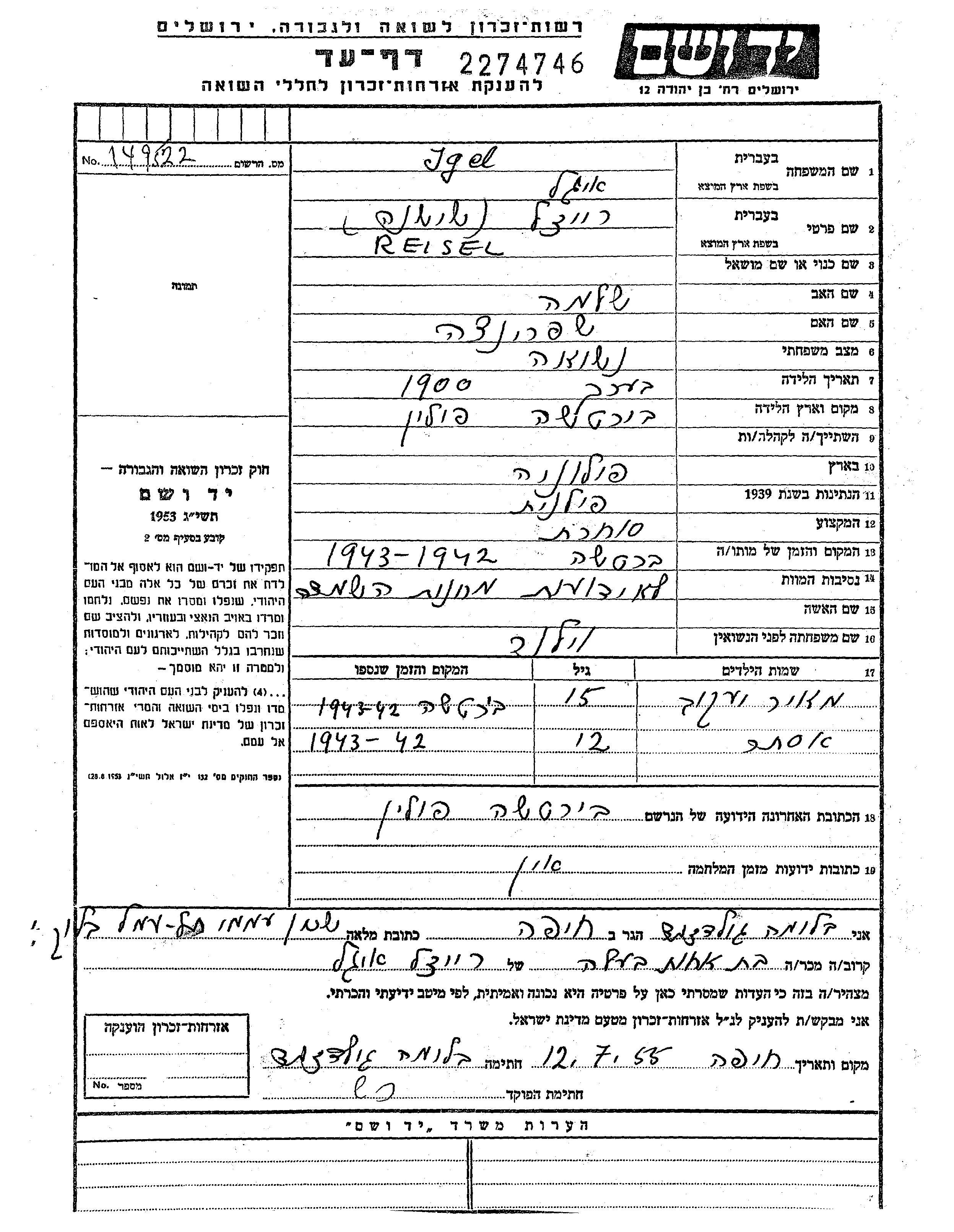יד ושם - המפעל להנצחת השמות בדפי עד