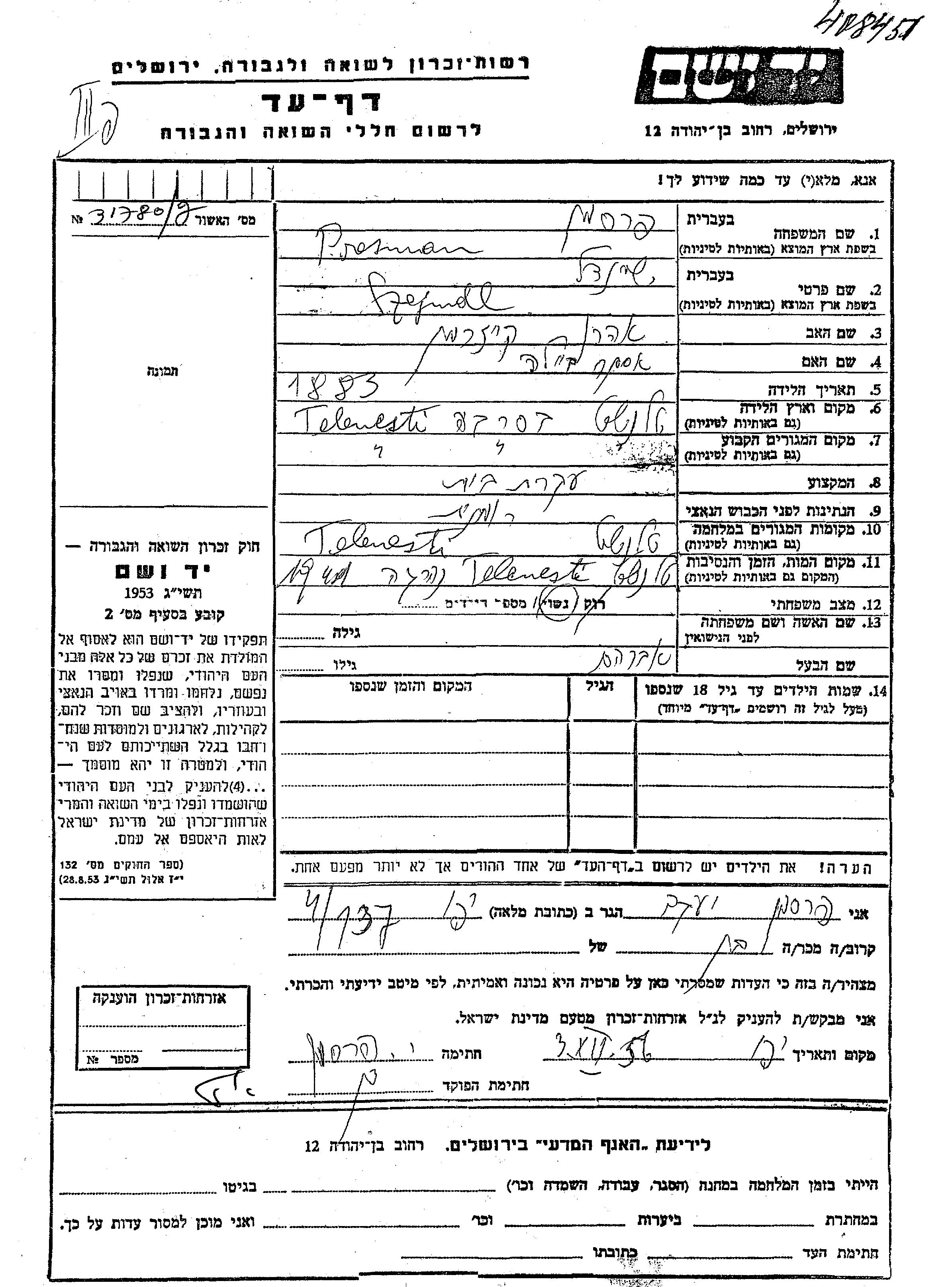 יד ושם - המפעל להנצחת השמות בדפי עד