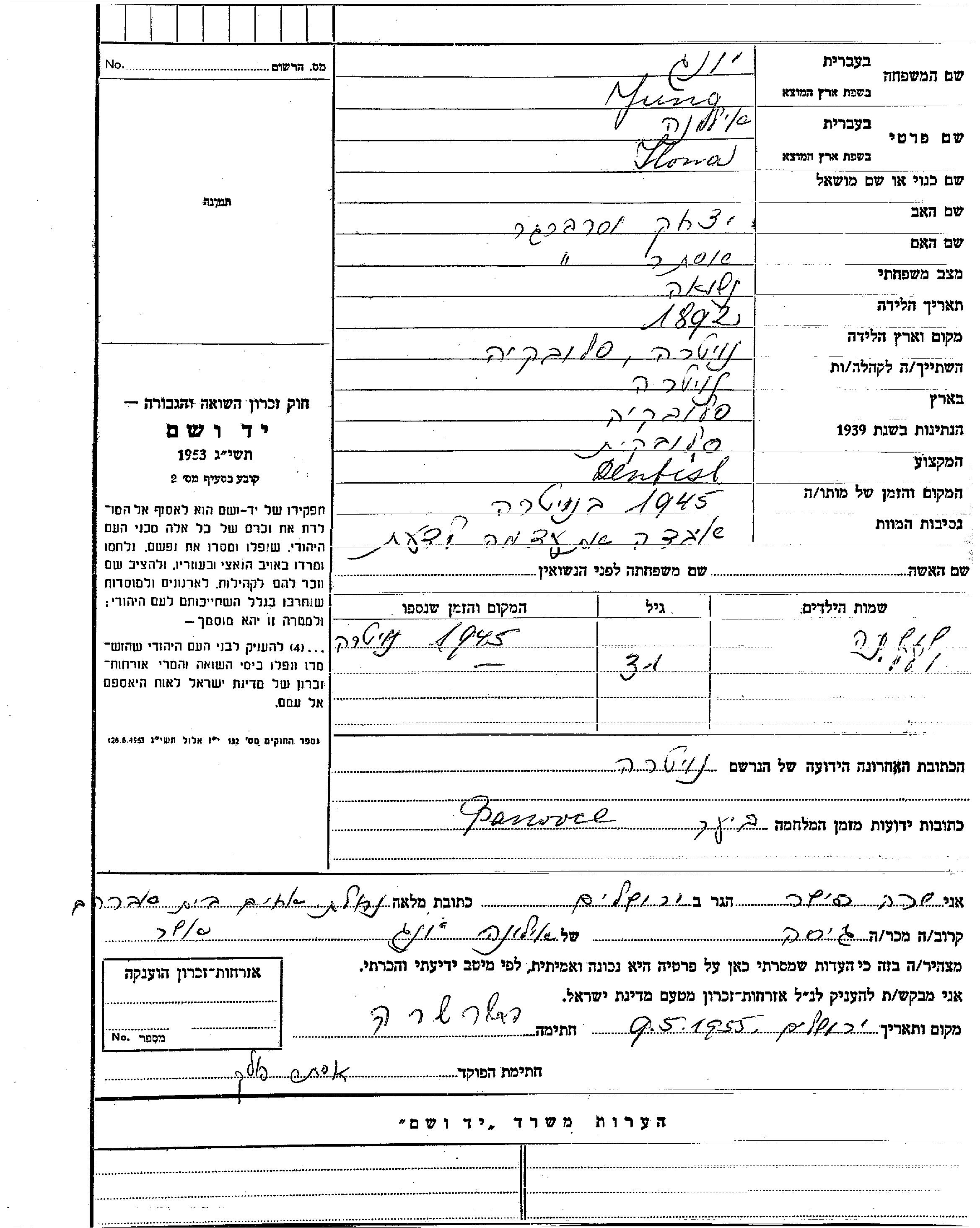 מאגר שמות קרבנות השואה