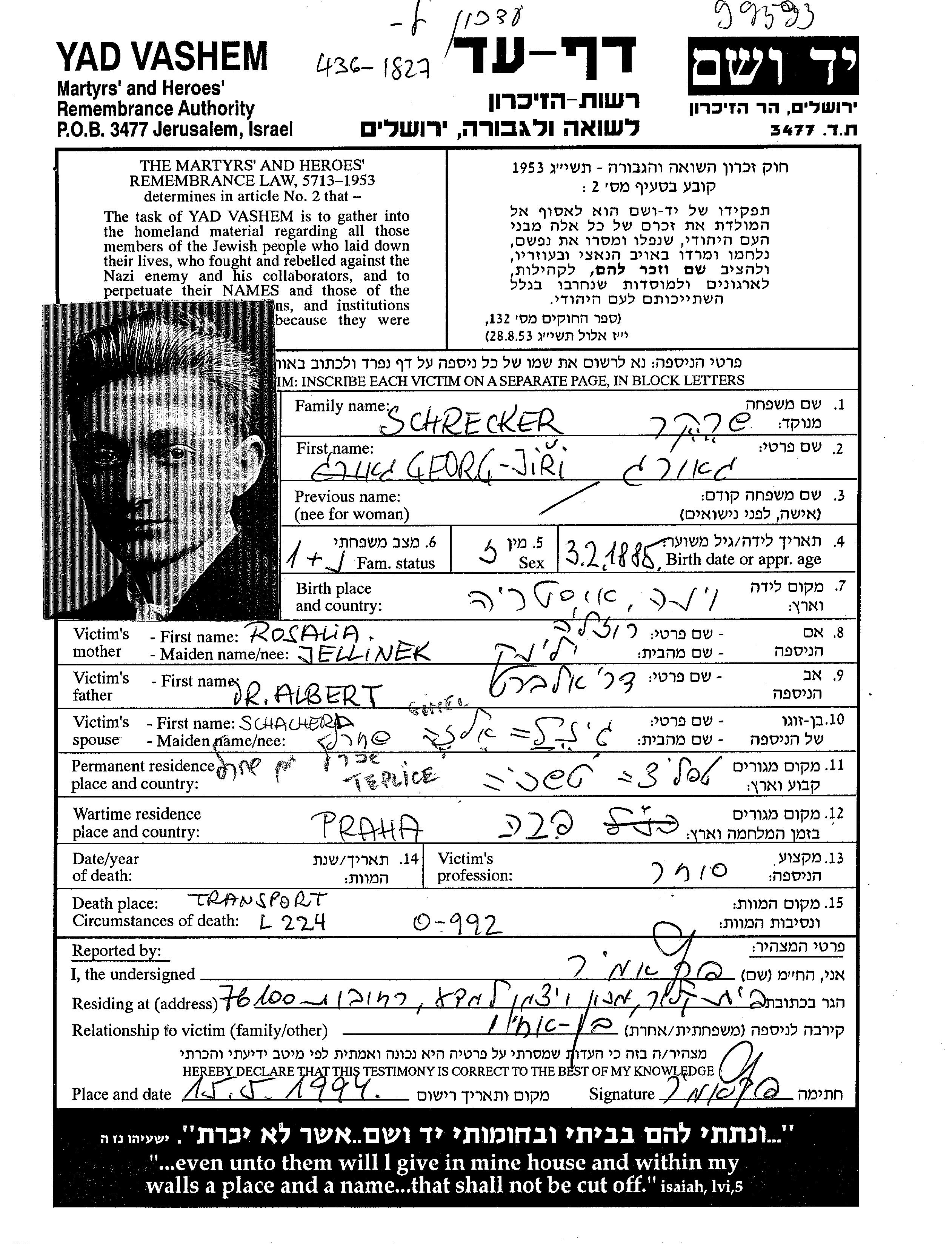 Schrecker | Jiri גאורג | 1885 | Teplice, צ'כוסלובקיה | דף-עד |