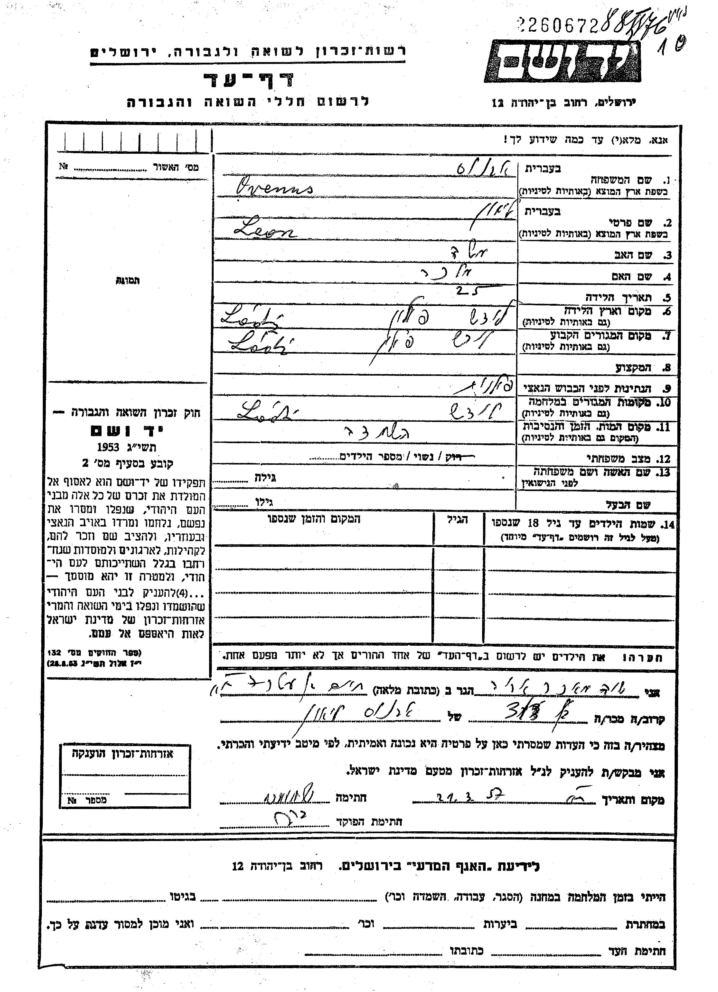 חיפוש שם מוסר דף העד. חיפוש לפי כל שם פרטי, כולל כינוי או שם חיבה