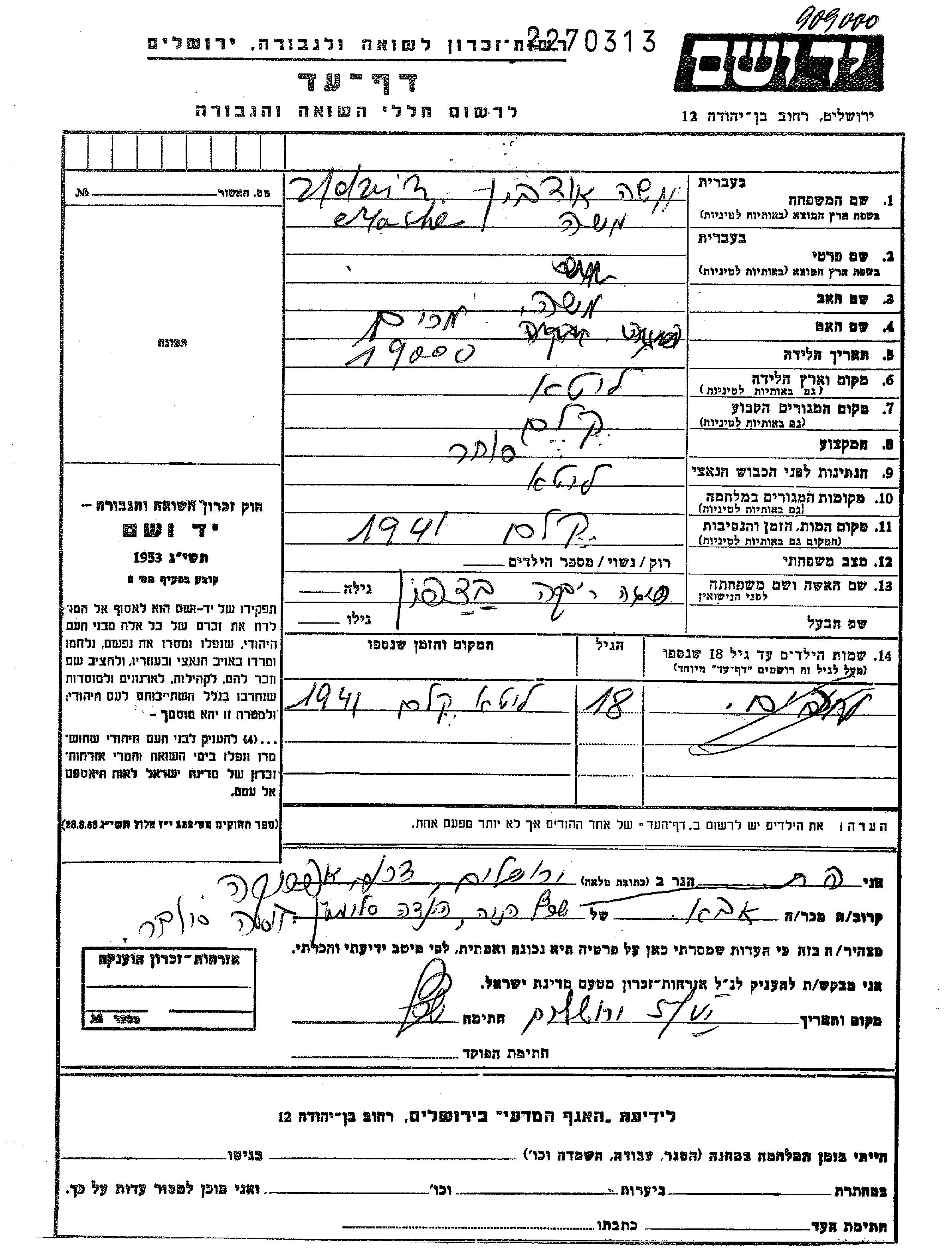 יד ושם - המפעל להנצחת השמות בדפי עד