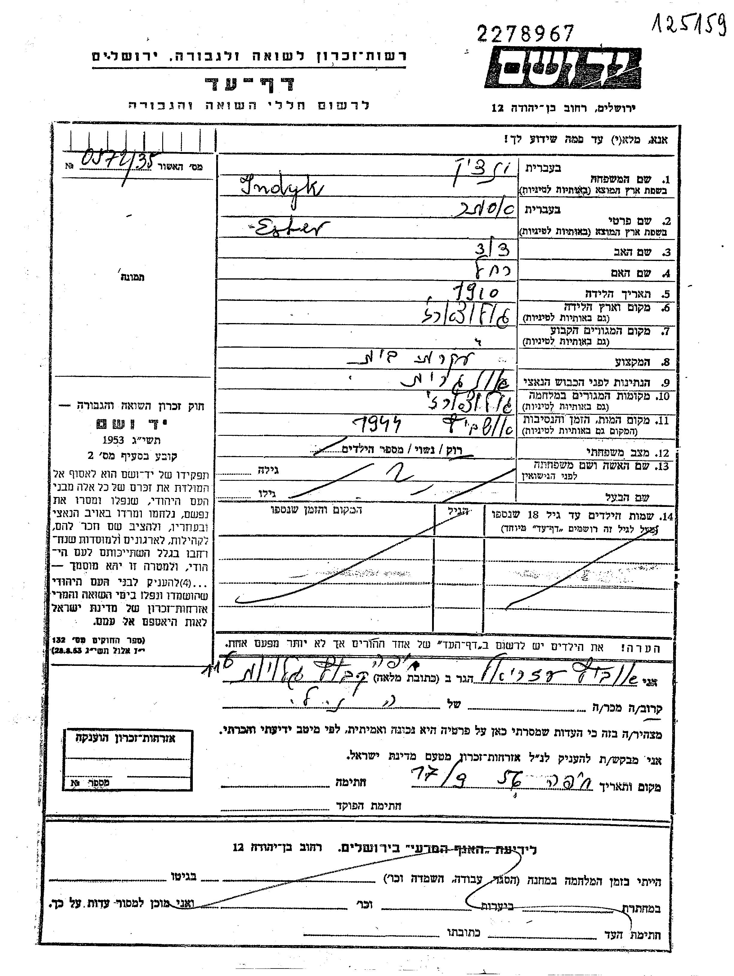 יד ושם - המפעל להנצחת השמות בדפי עד