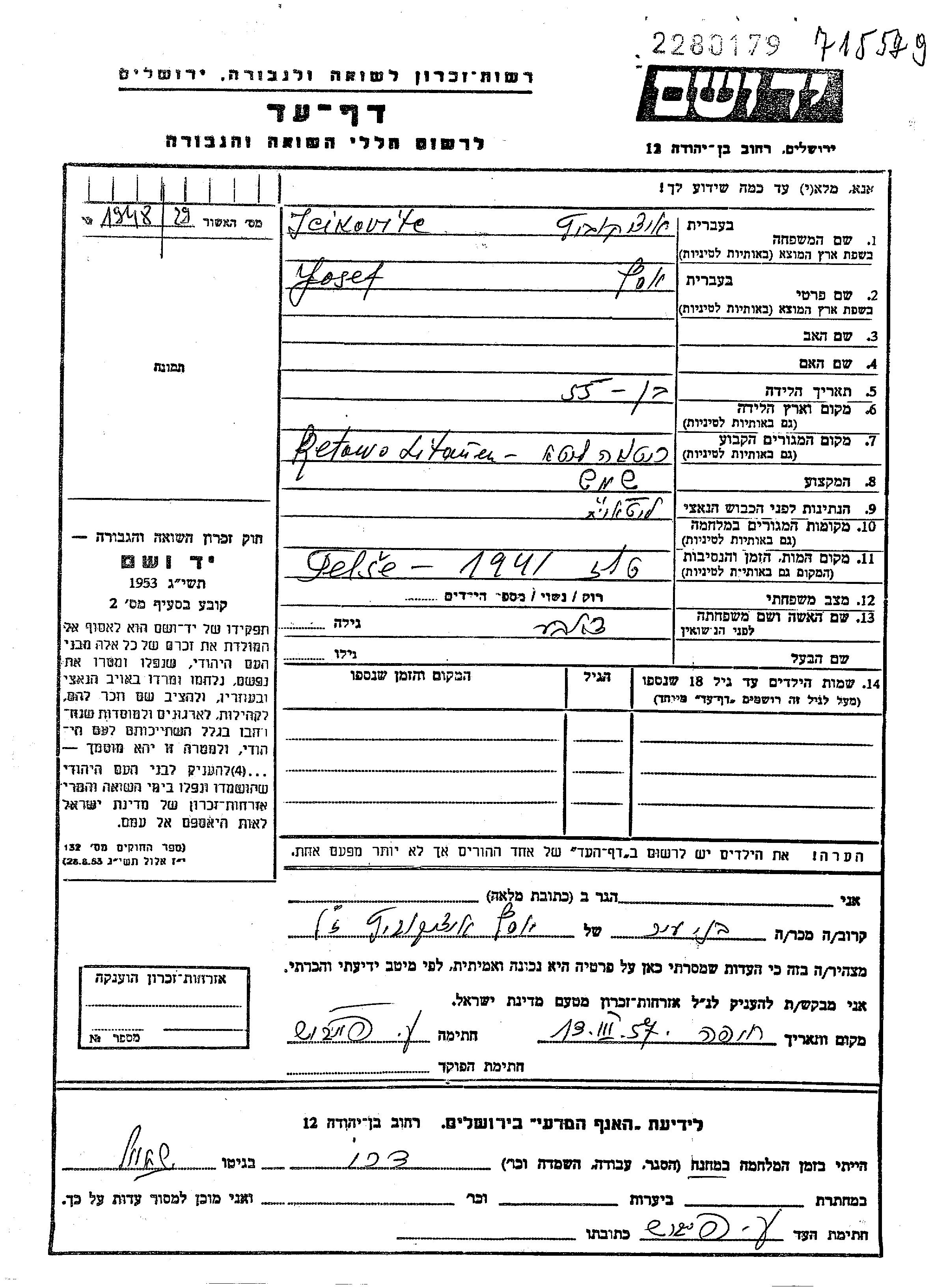 חיפוש שם מוסר דף העד. חיפוש לפי כל שם פרטי, כולל כינוי או שם חיבה