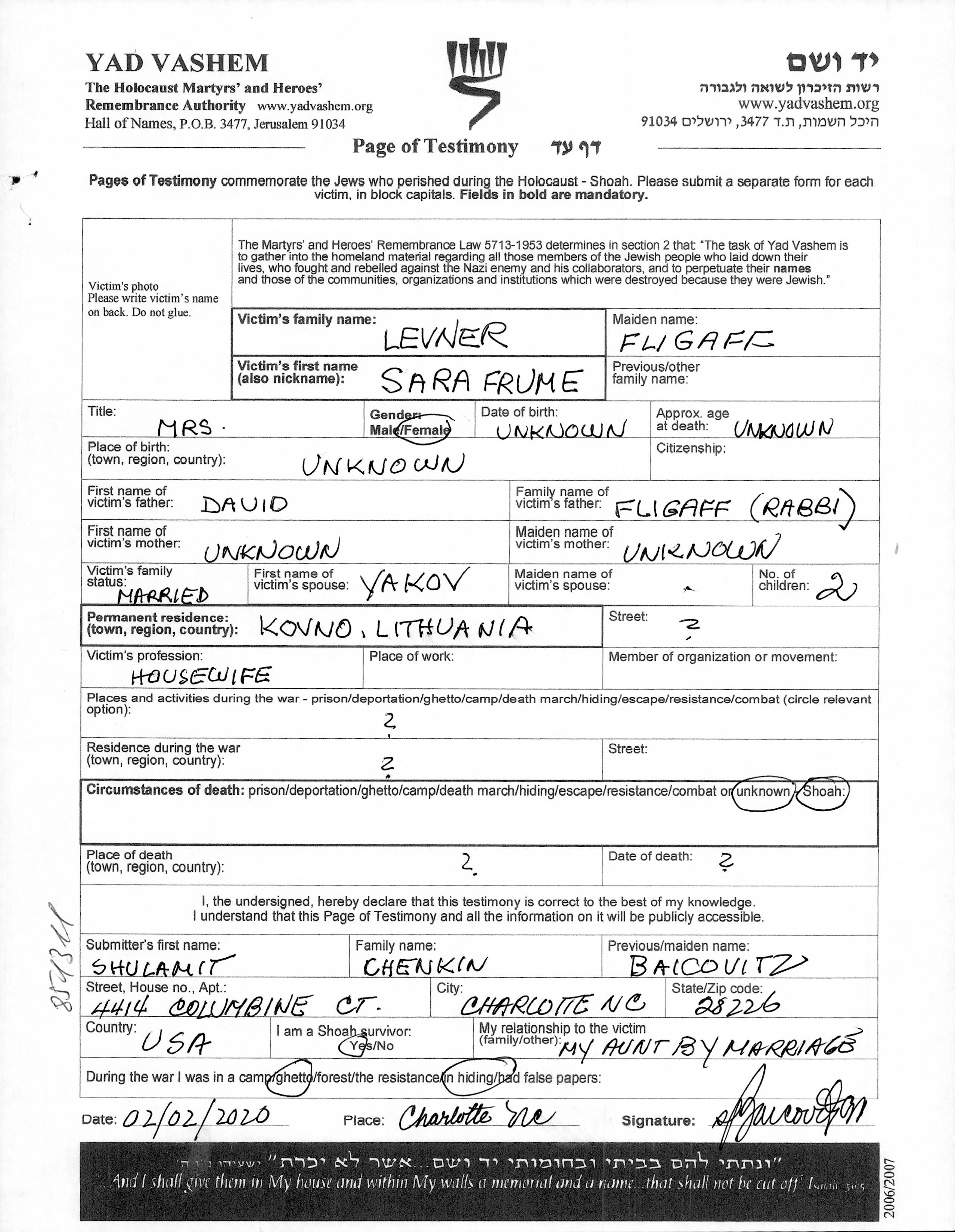 Levner | Sara Frume | Kovno, ליטא | דף-עד | |
