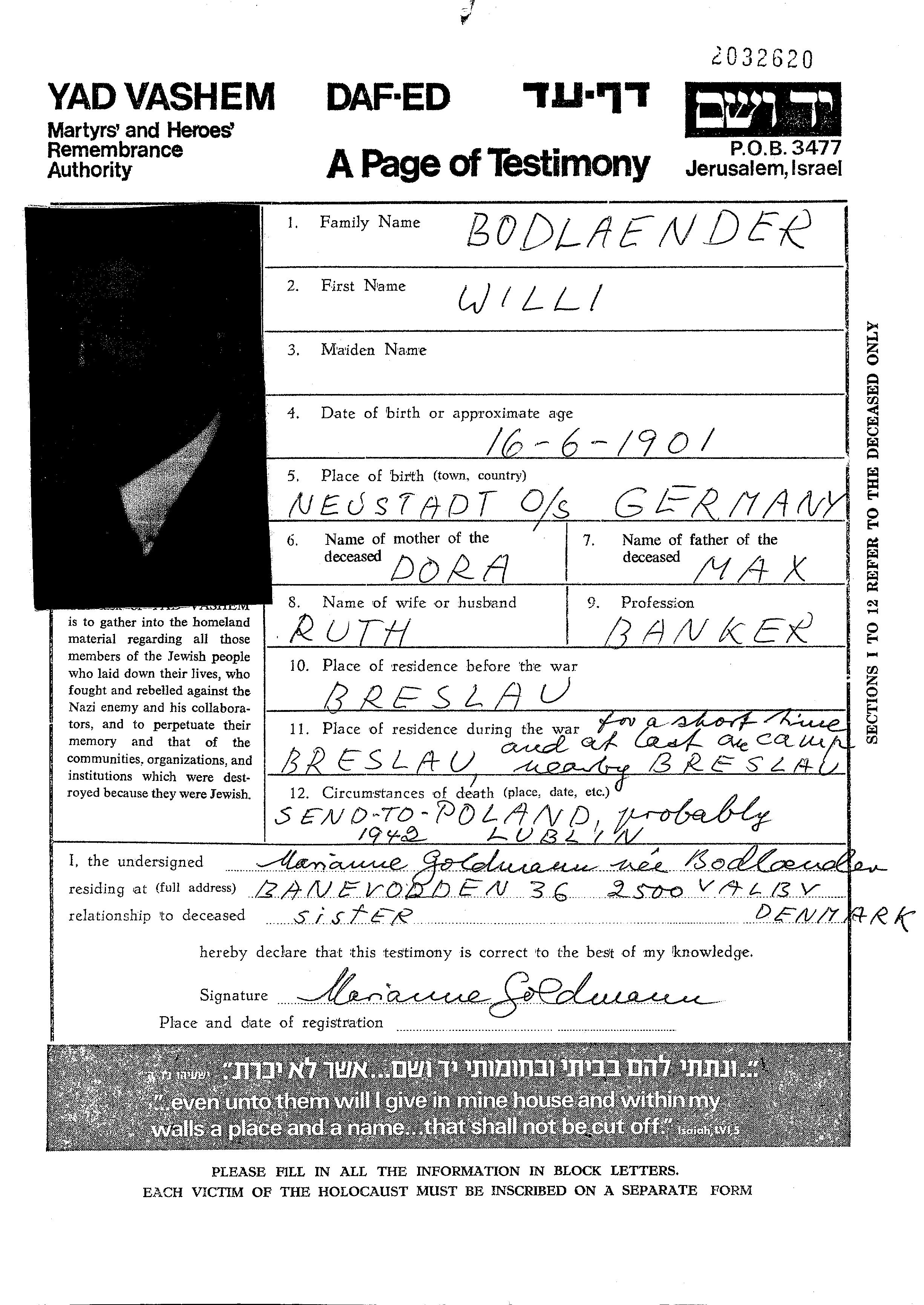 Bodlaender Willi 1901 Breslau, גרמניה דף-עד
